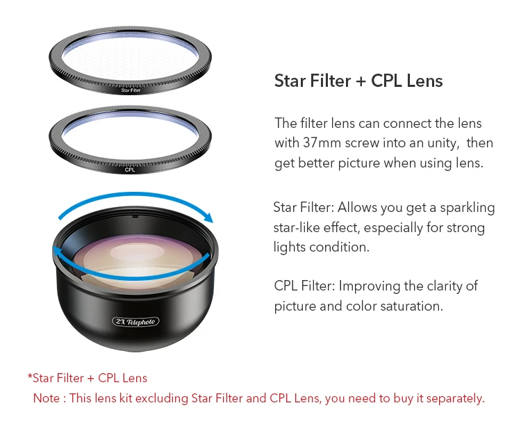 APEXEL HD 2X телескоп объектив 4K телефото зум объектив камеры CPL + Звездный фильтр для iPhone X XS Max Huawei Samsung все смартфоны