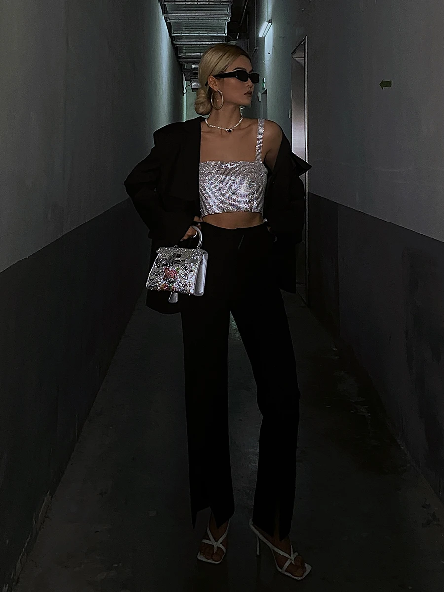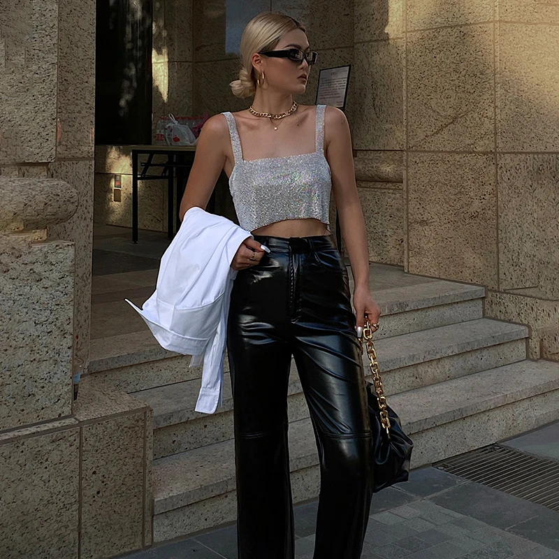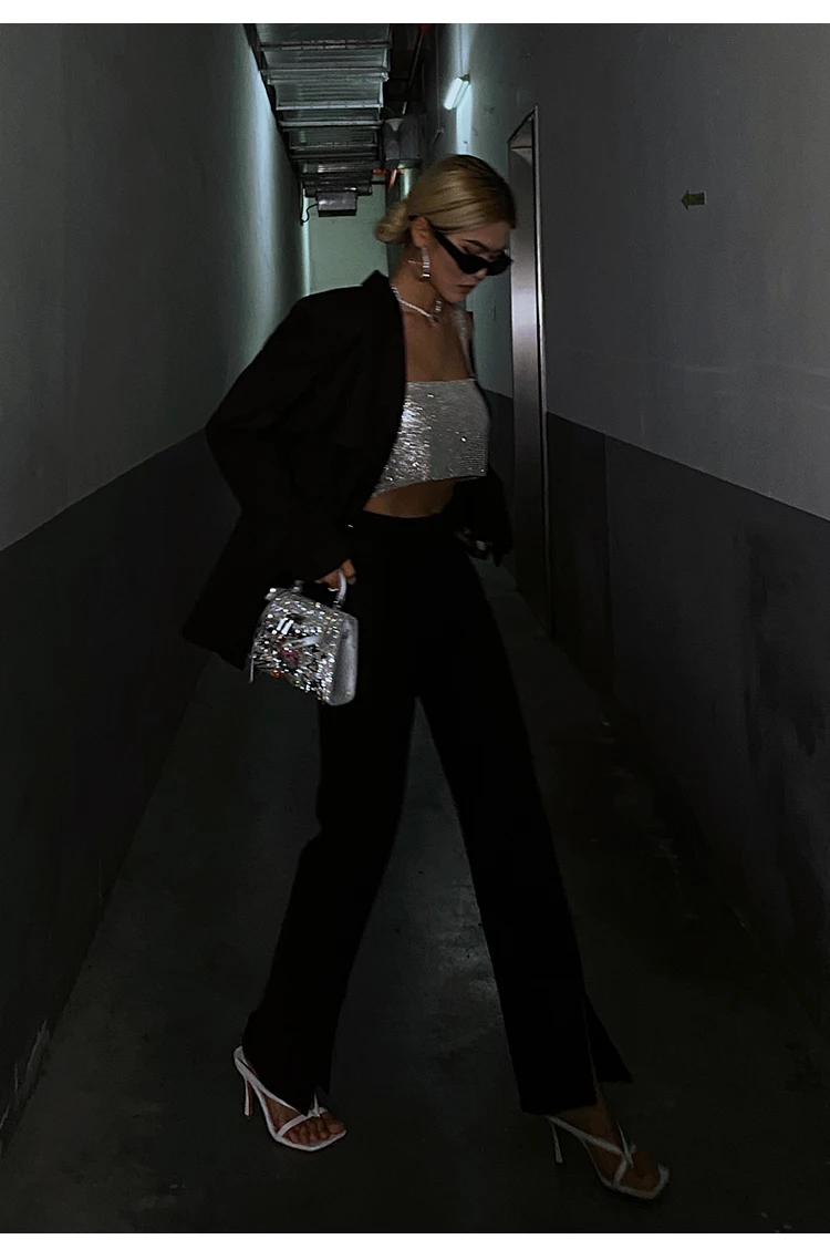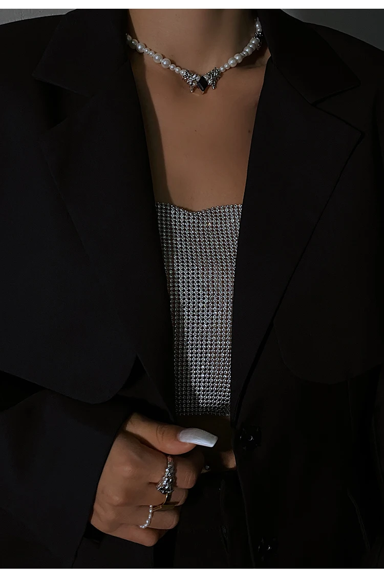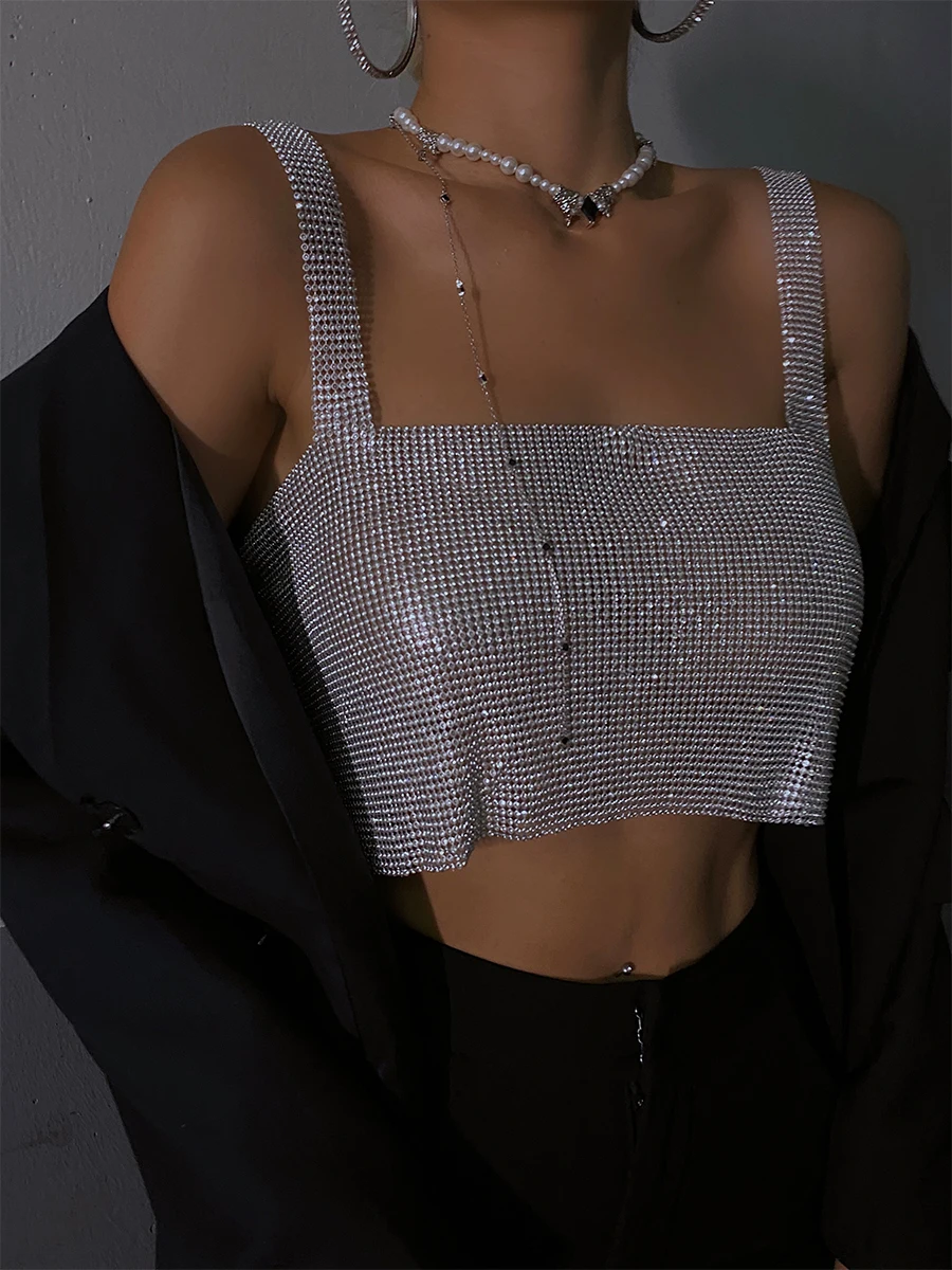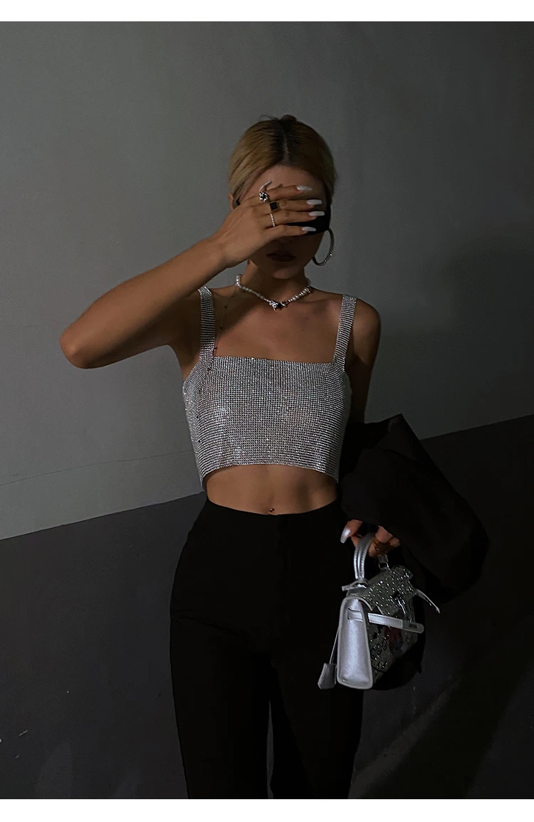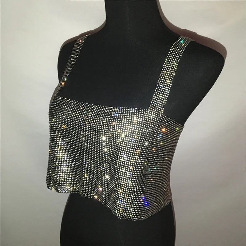 Блузка женская с открытой спиной, пикантный металлический топ с полностью хрустальными стразами и блестками, кроп-топ для ночного клуба, фестивавечерние НКИ