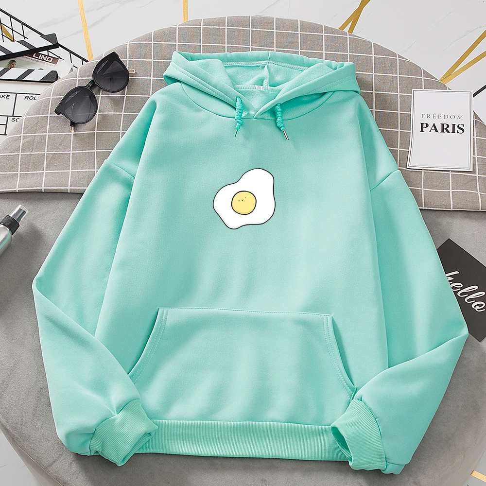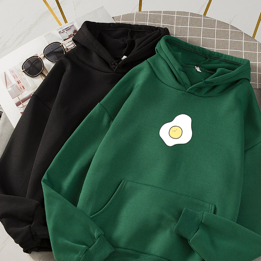 Милая омлет с графическим принтом Милая креативная Толстовка Оверсайз теплая толстовка Kpop уличная одежда толстовки женские Харадзюку мягкие Meng