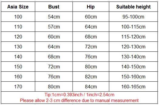 Таблица размеров приведена только для справки! Размеры в основном соответствуют росту детей. Пожалуйста, измерьте рост вашего ребенка и сравните с таблицей размеров, чтобы выбрать размер. Если полные, выбирайте на 1 или 2 размера больше.