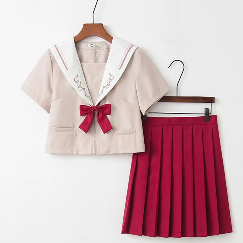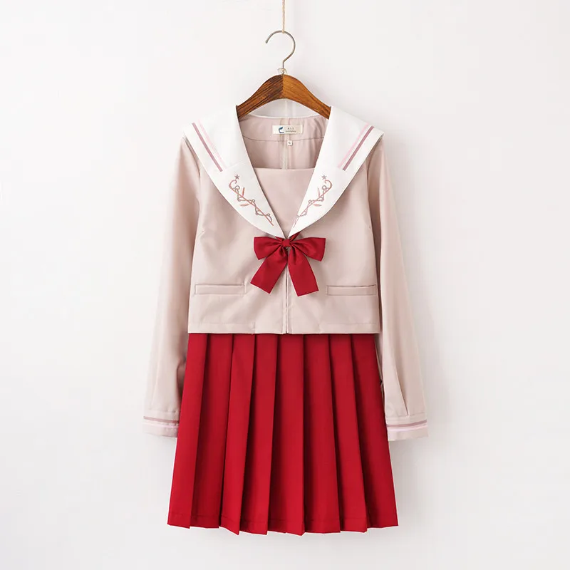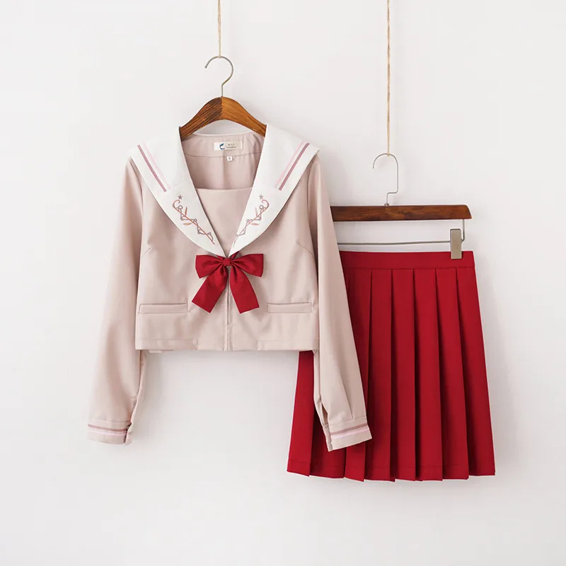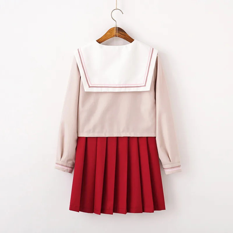 Осенняя новинка, школьная одежда для колледжа светильник-розовые школьные матросские Костюмы для девочек, рубашка с длинным рукавом, красная плиссированная юбка, японская форма JK