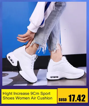 Женские теннисные туфли, дышащие кроссовки с воздушной подушкой, удобная обувь, увеличивающая рост, на шнуровке, женская уличная белая спортивная обувь