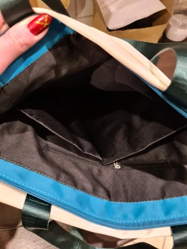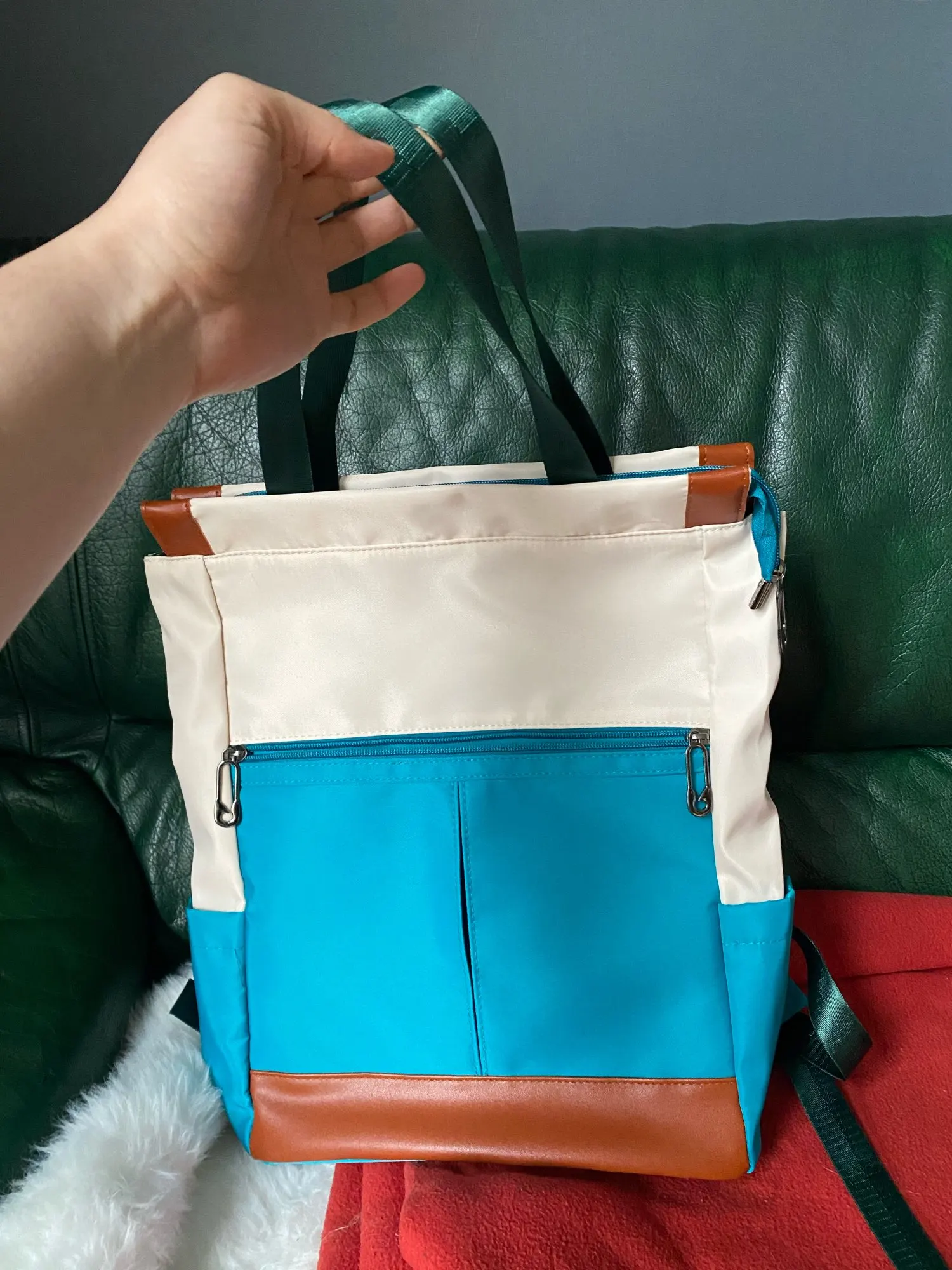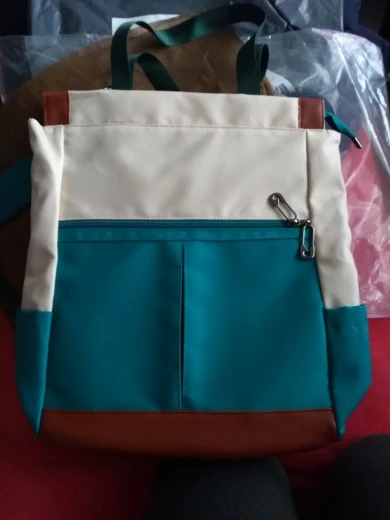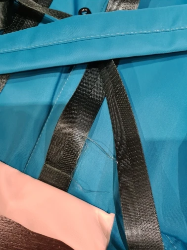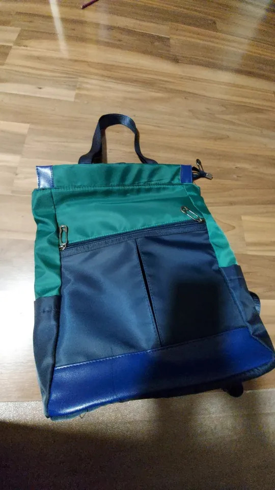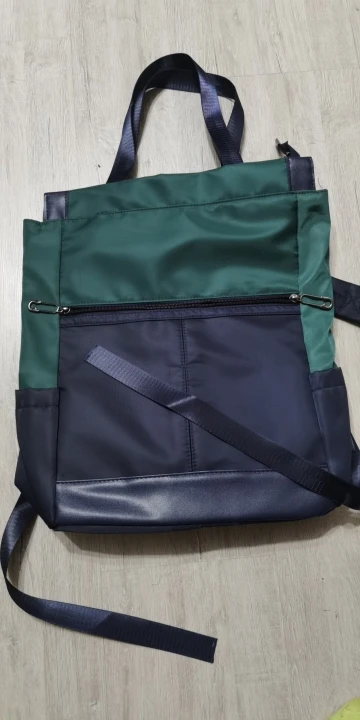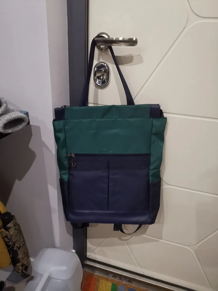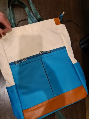 Ярко синие детали на фото - кожзам и к его качеству большой вопрос, какой-то он хлипкий. В остальном выглядит неплохо, сшито аккуратно, карманов много