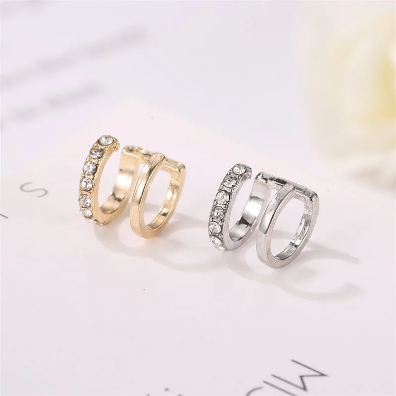 Двойной u-образные серьги вокруг уха клипсы с кристаллами для женщи...