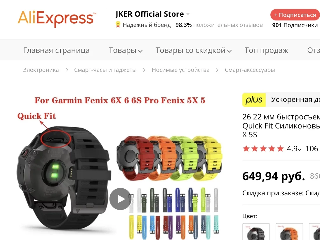 Страна: RU Color: Gray Size: 22mmFenix 6 5 5Plus Доставка: Standard Shipping 11.01.2021