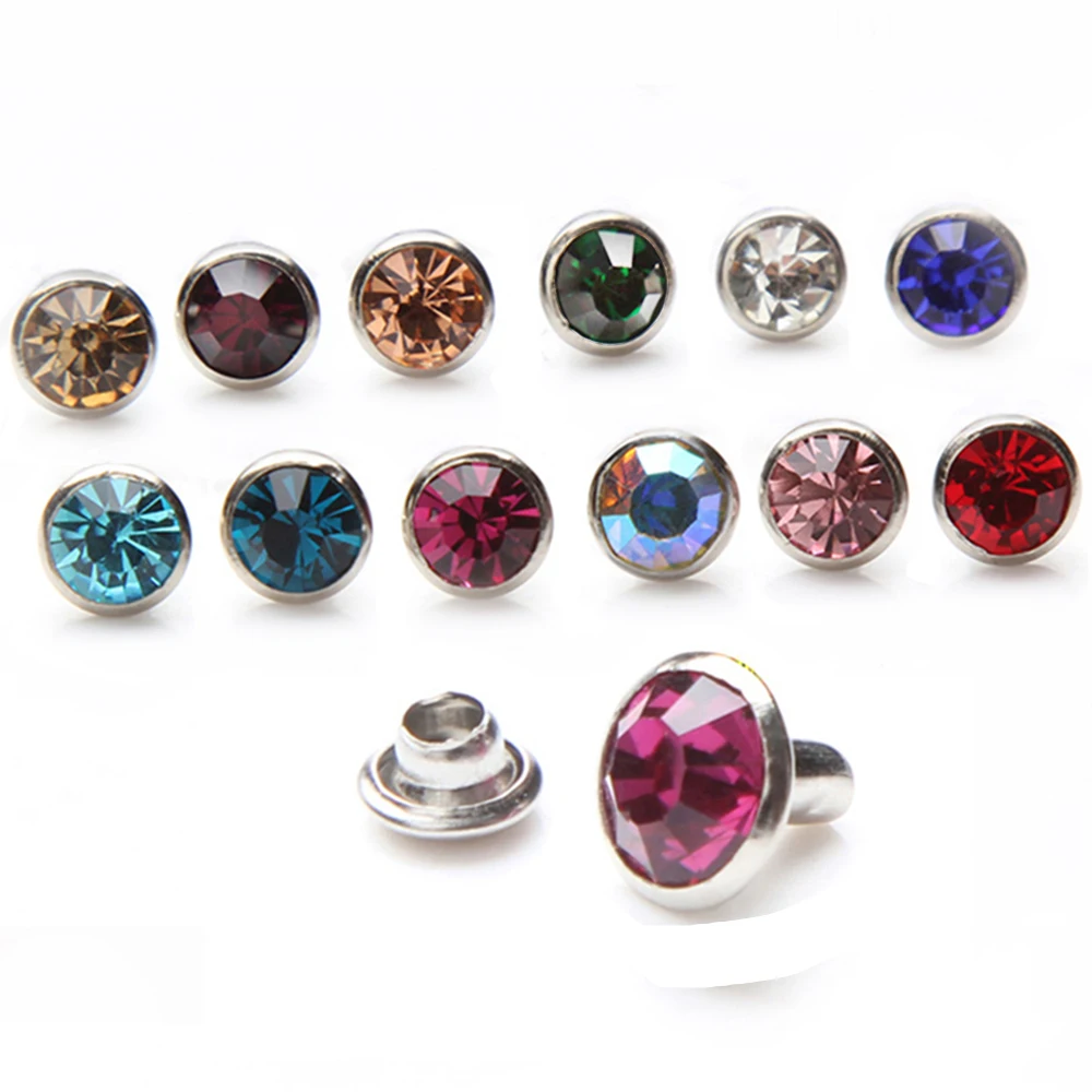 100 комплектов разноцветные 6 мм8 мм кристаллы заклепки из горного хрусталя Алмазные шпильки для кожевенного ремесла DIY заклепки для кожи