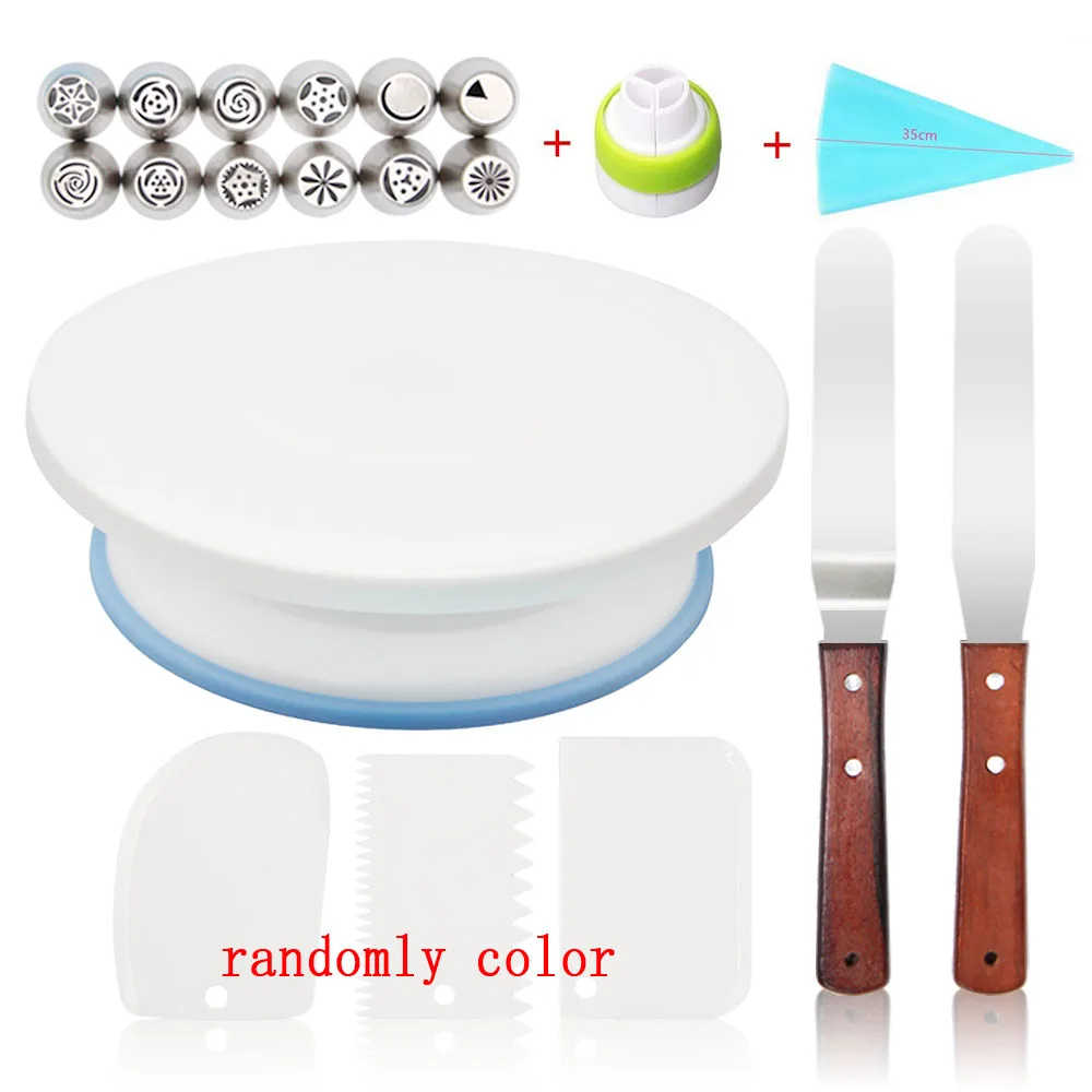 Подставка для торта, вращающаяся основа для торта, пластиковый нож для украшения теста, 10 дюймов, кремовый, подставка для пирожных