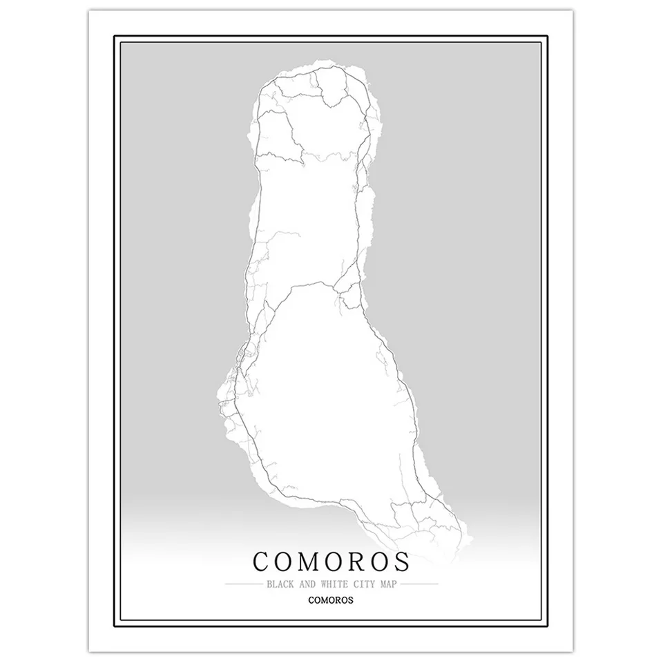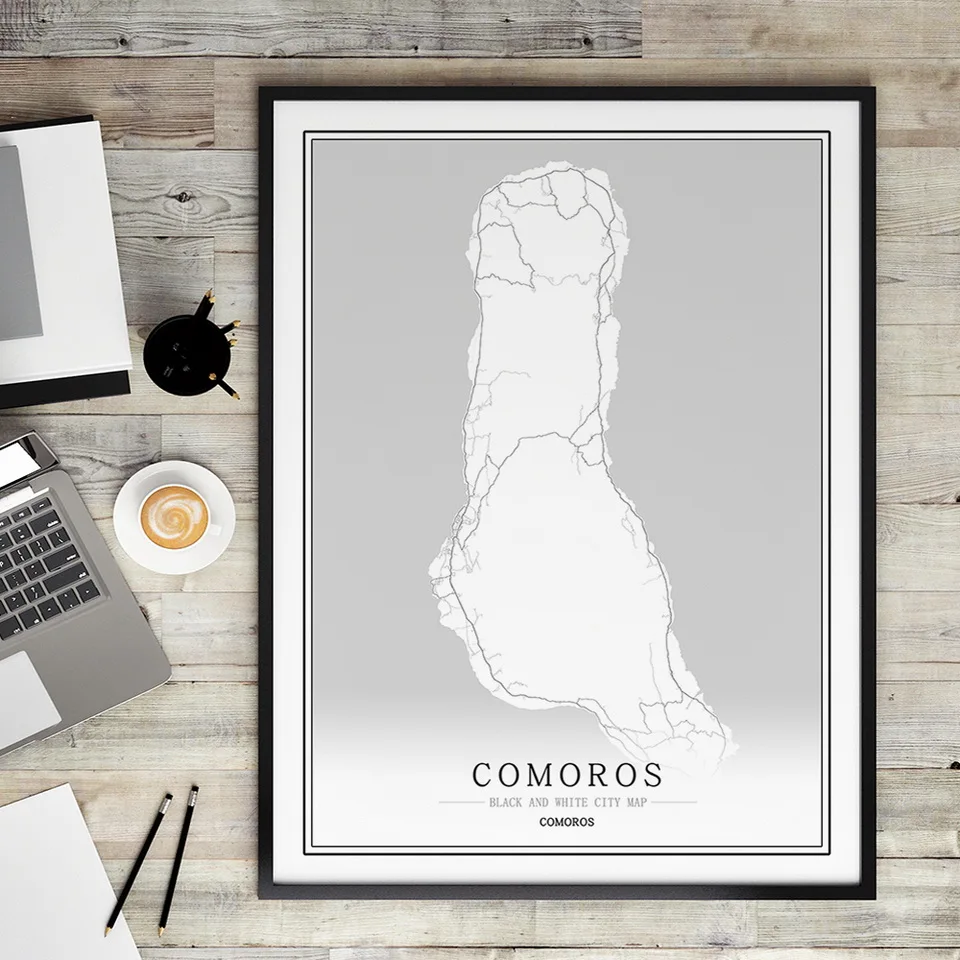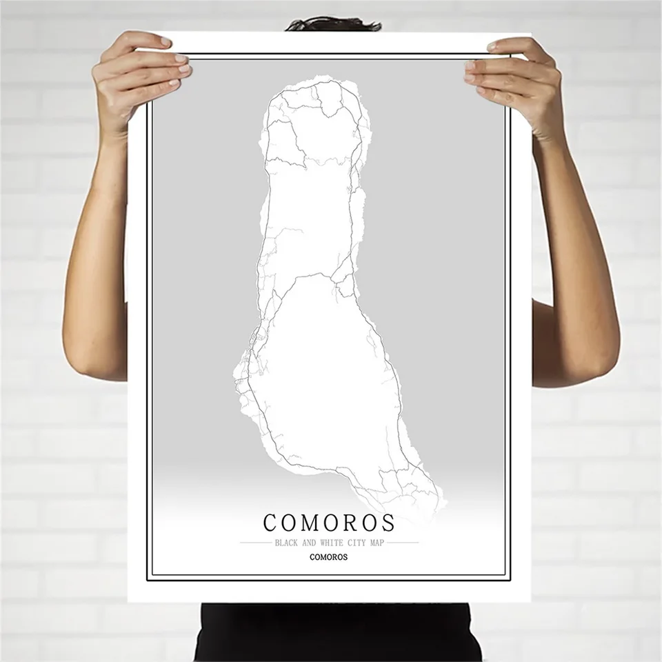 Коморские Острова креативная Карта города абстрактные картины на холсте Черно-Белая настенная Художественная печать плакат картина украшение дома