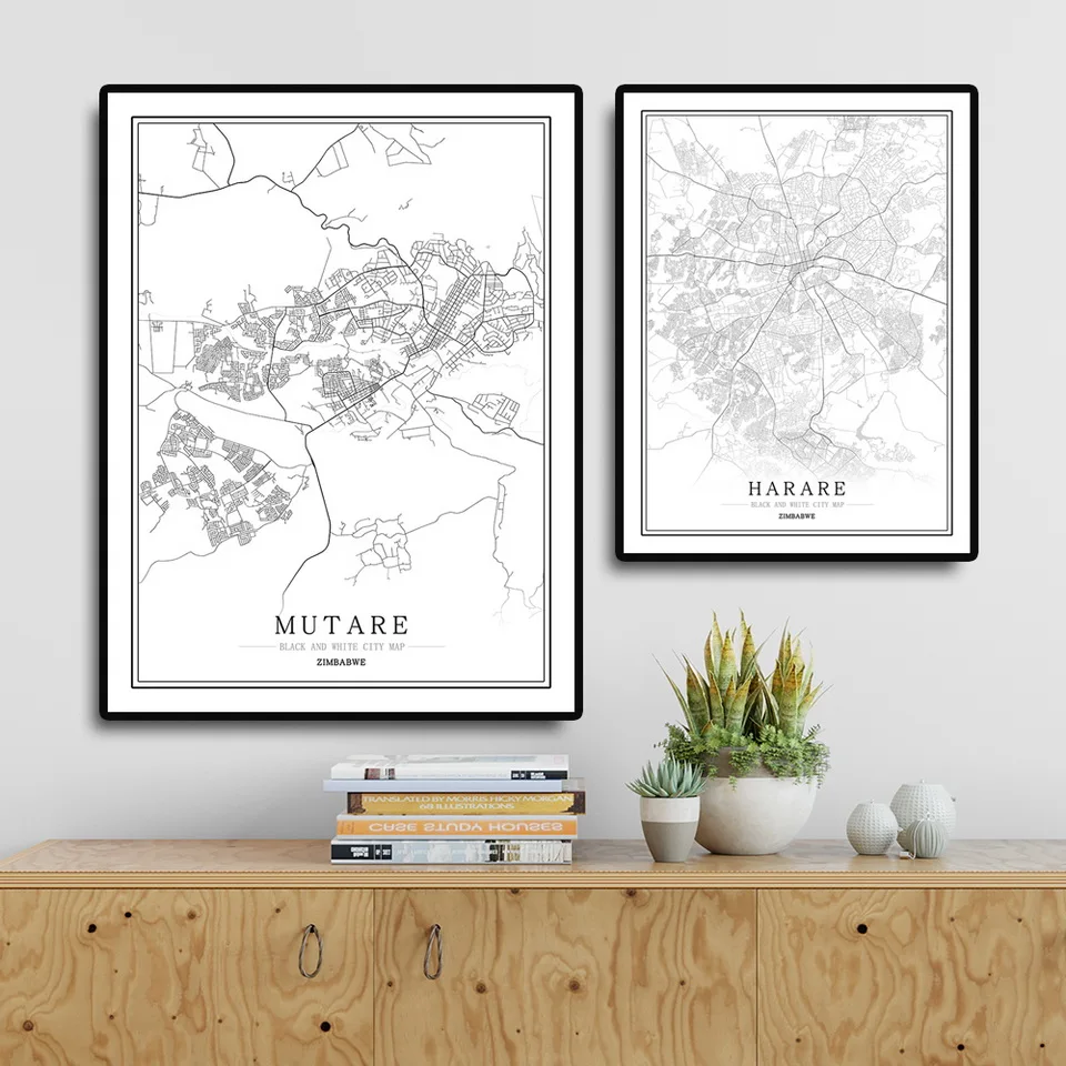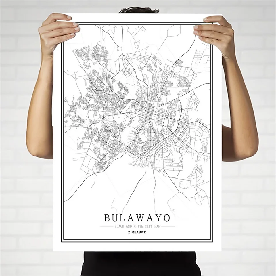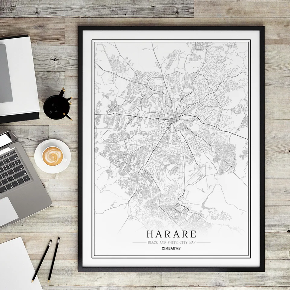 Зимбабве креативная Карта города Harare абстрактные картины на холсте, черно-белая Настенная картина, постер, картина, украшение для дома