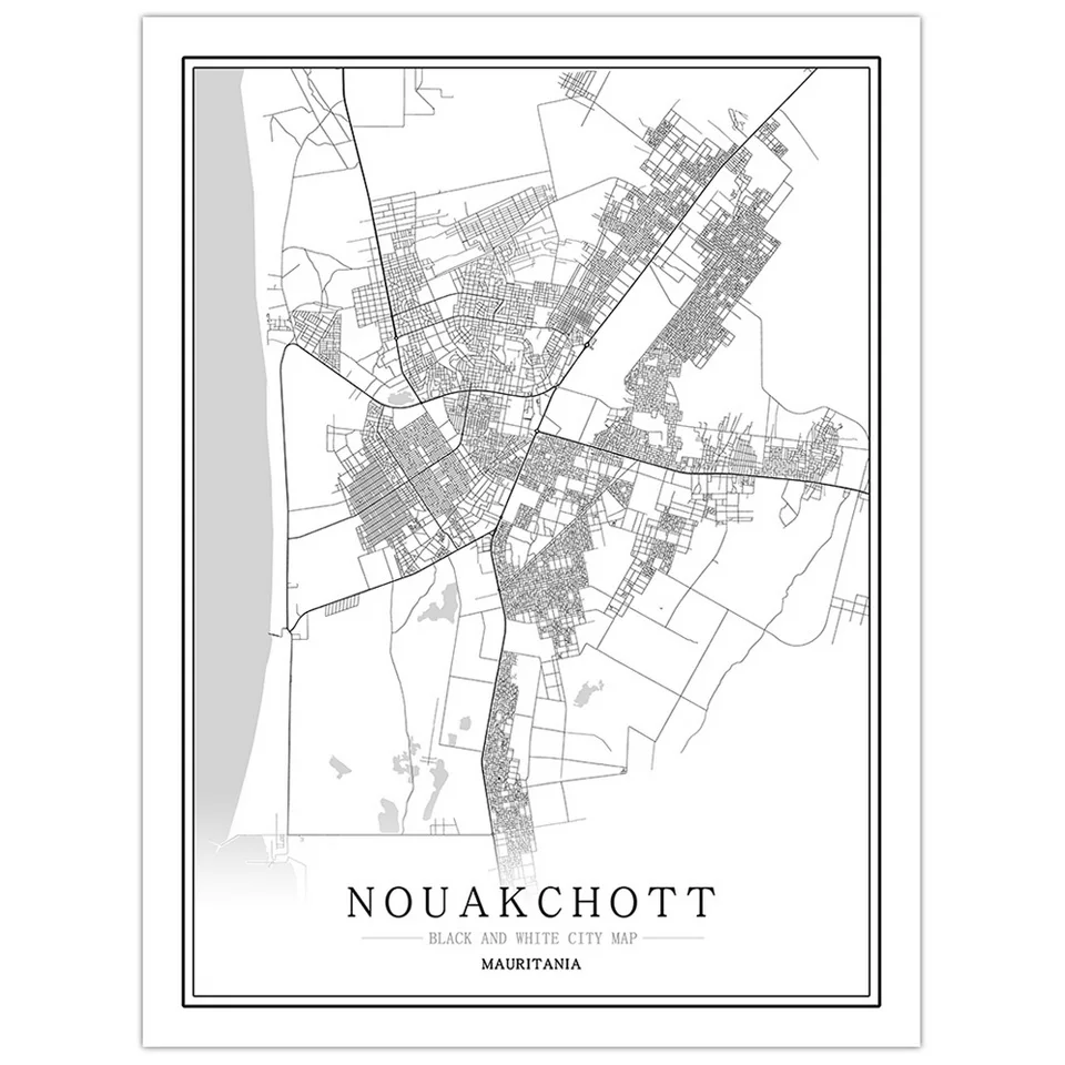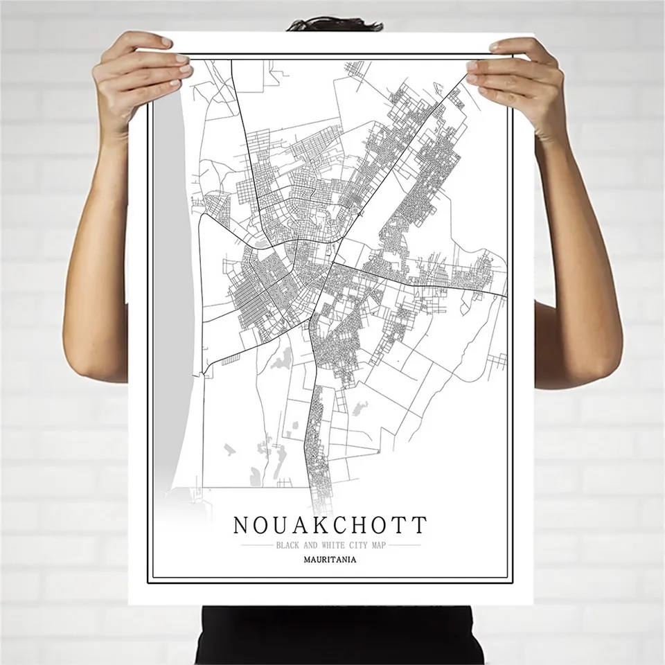 Креативная Карта города Мавритании Нуакшот абстрактные картины на холсте Черно-Белая стена Художественная печать плакат картина украшение дома