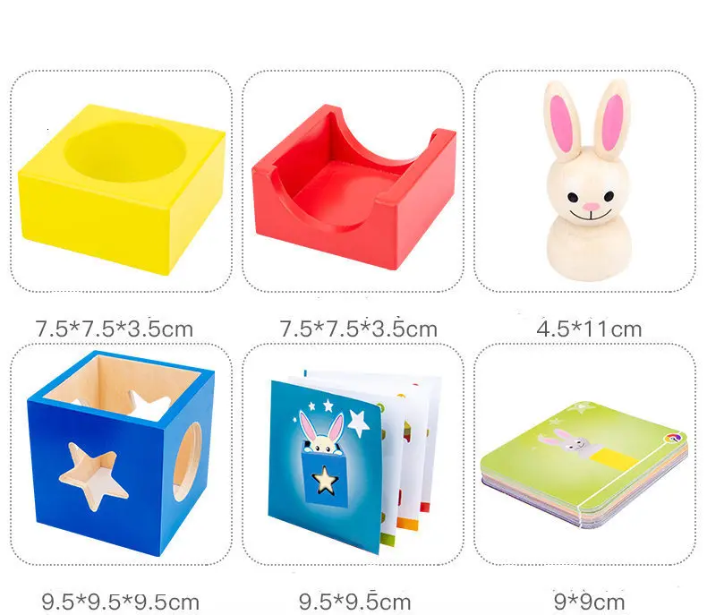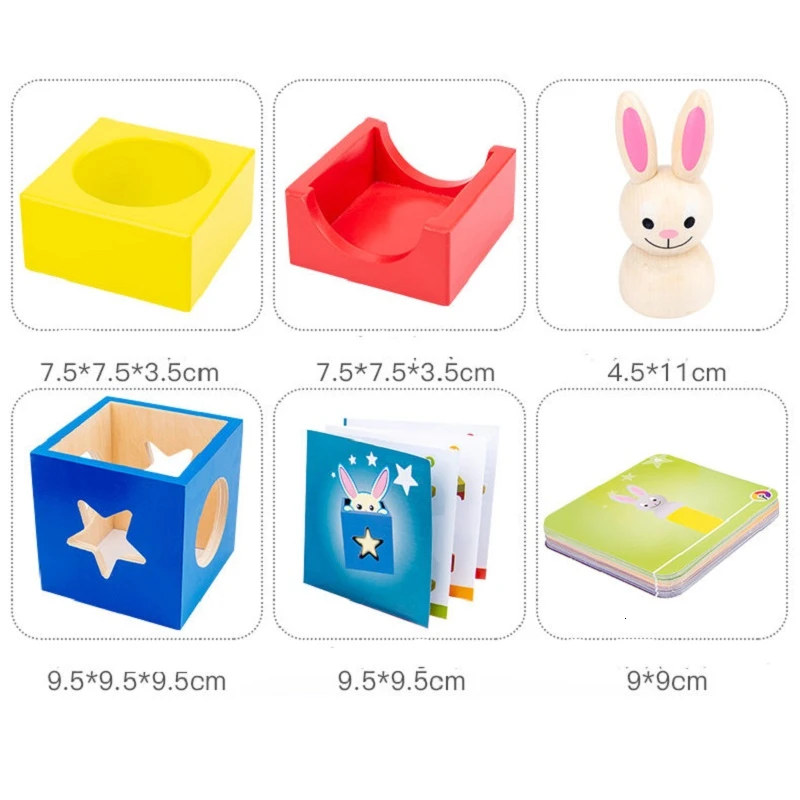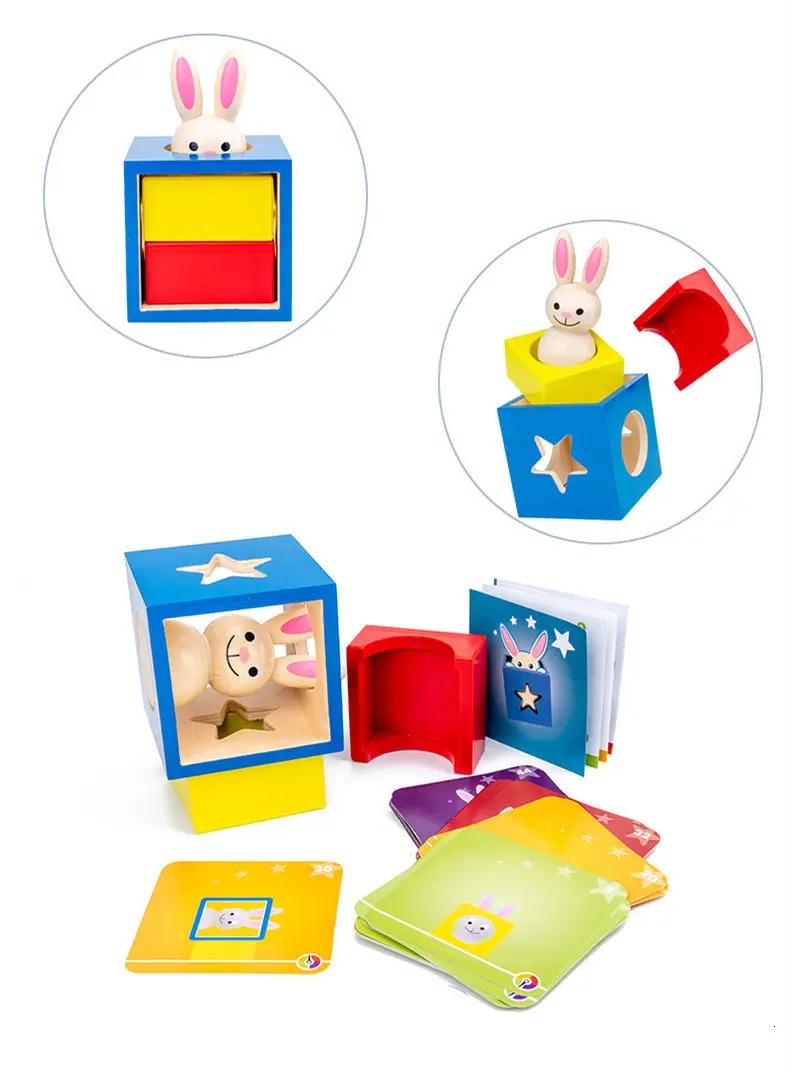 «Вытащите кролика из коробки!» Это 3D пазл для маленьких детей. Он поставляется с четырьмя большими, крепкими деревянными блоками, и дети организуют блоки, чтобы соответствовать каждой задаче. Некоторые проблемы могут выглядеть очень похожими, но решение может быть совершенно иным в зависимости от таких вещей, как то, как далеко уши палочка с кроликом. С помощью этой игры дети будут веселиться, открывая мир пространственного восприятия 3D, важного умения в чтении и математических учениях. Дети могут решить 60 проблем... или просто играть с блоками в качестве деревянных игрушек, исследуя концепции, такие как выше/ниже, внутри/снаружи, видны/скрыты и т. Д.