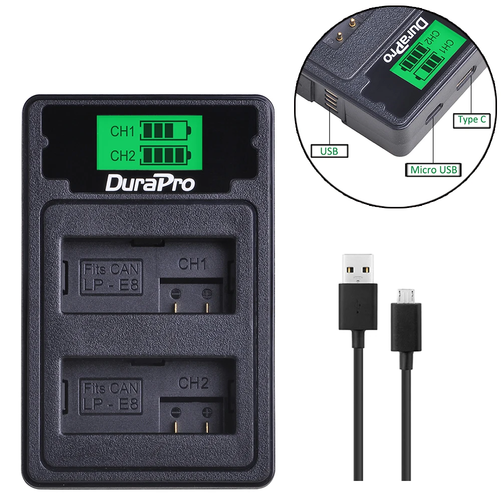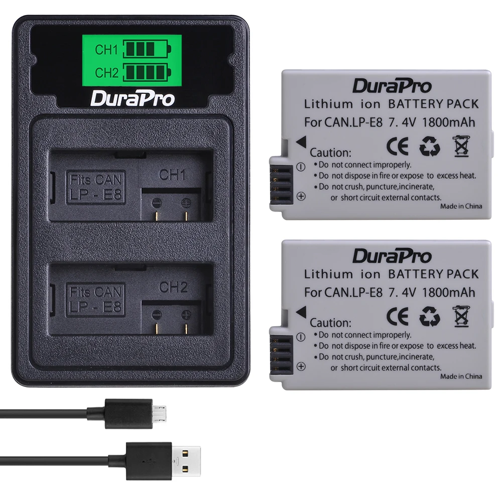 2 шт. 1800 мАч LP E8 LP-E8 литий-ионный аккумулятор для камеры + двойное зарядное устройство с ЖК-дисплеем с кабелем типа C для Canon EOS 550D 600D 650D 700D
