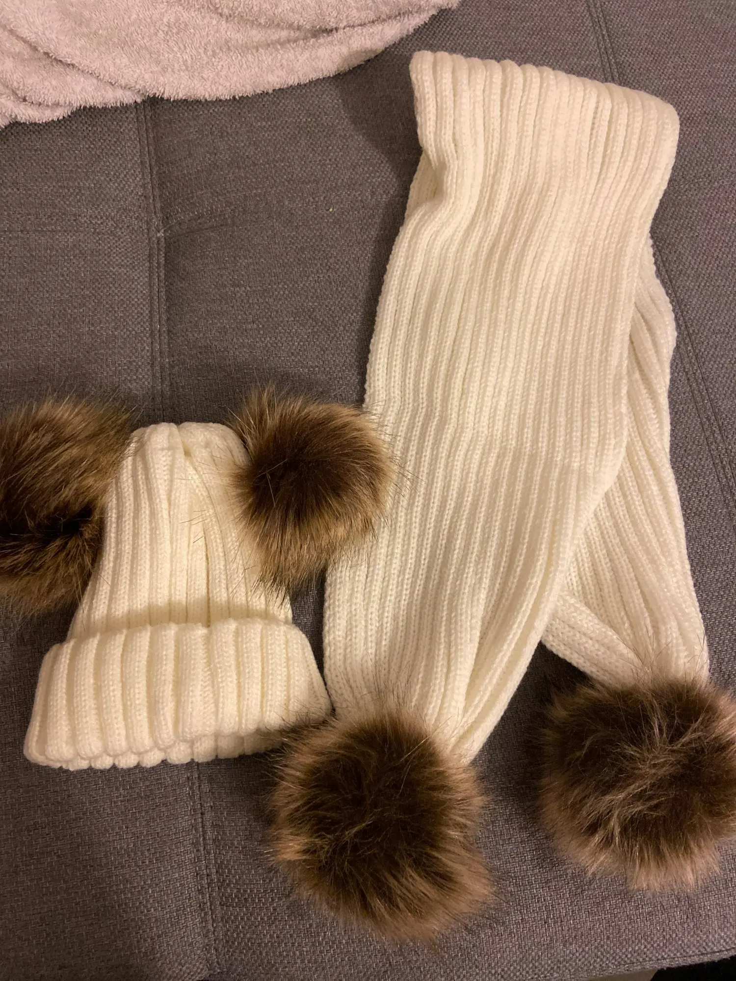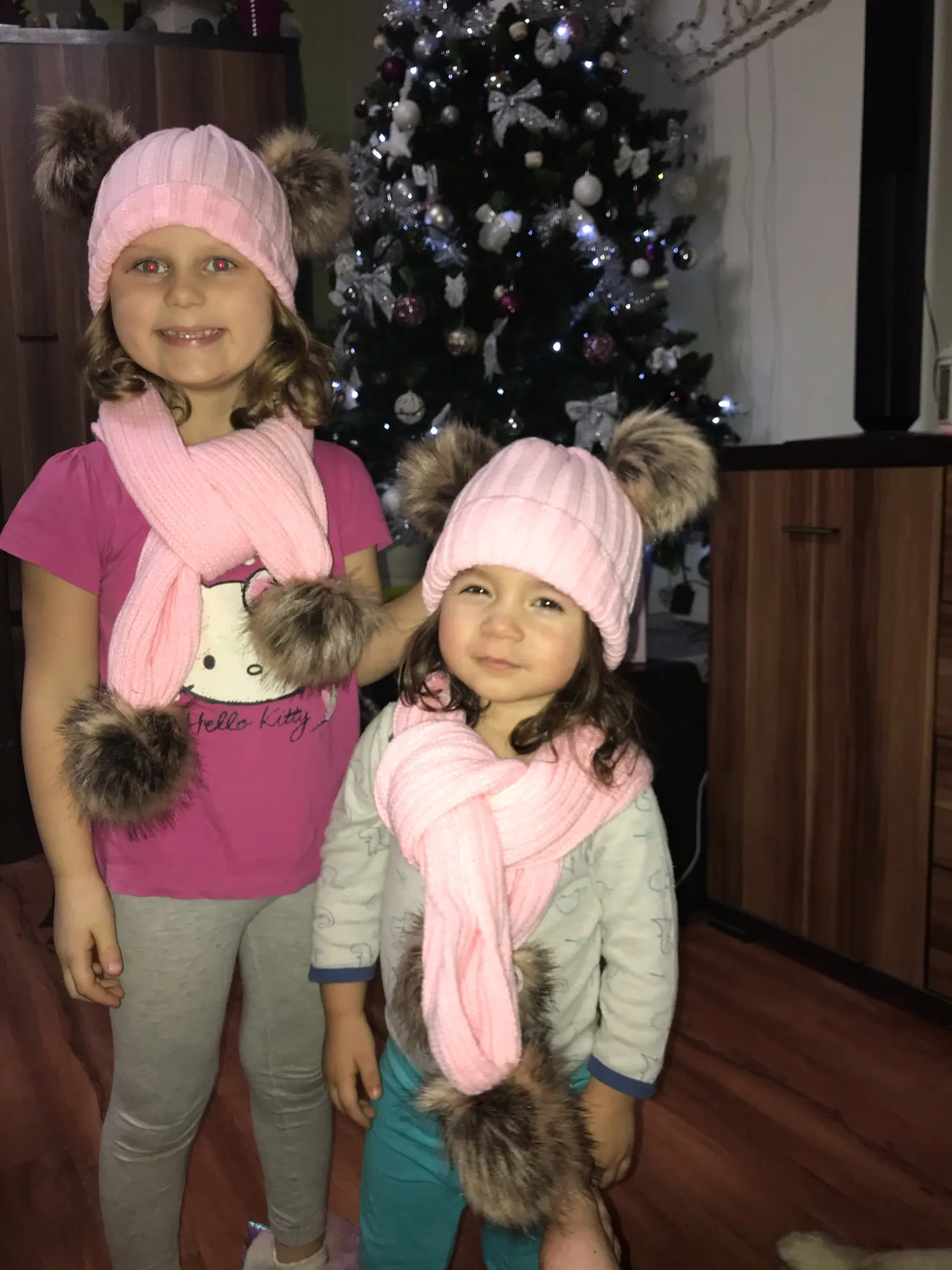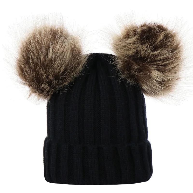 Шапка и шарф Детские, зимние, вязаные, с двумя помпонами