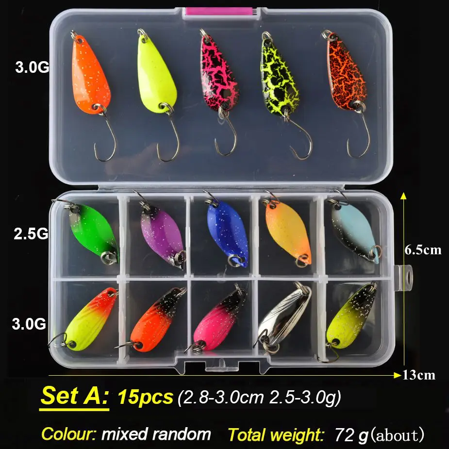 Набор приманок TOMA для форели, ложка, металлическая приманка 2.5g 3 г 4.5g 5g разноцветные рыболовные снасти для пресной воды, искусственная рыбалка в озере