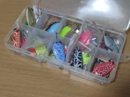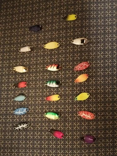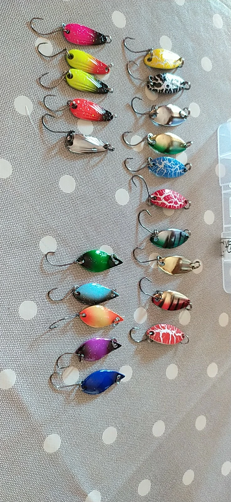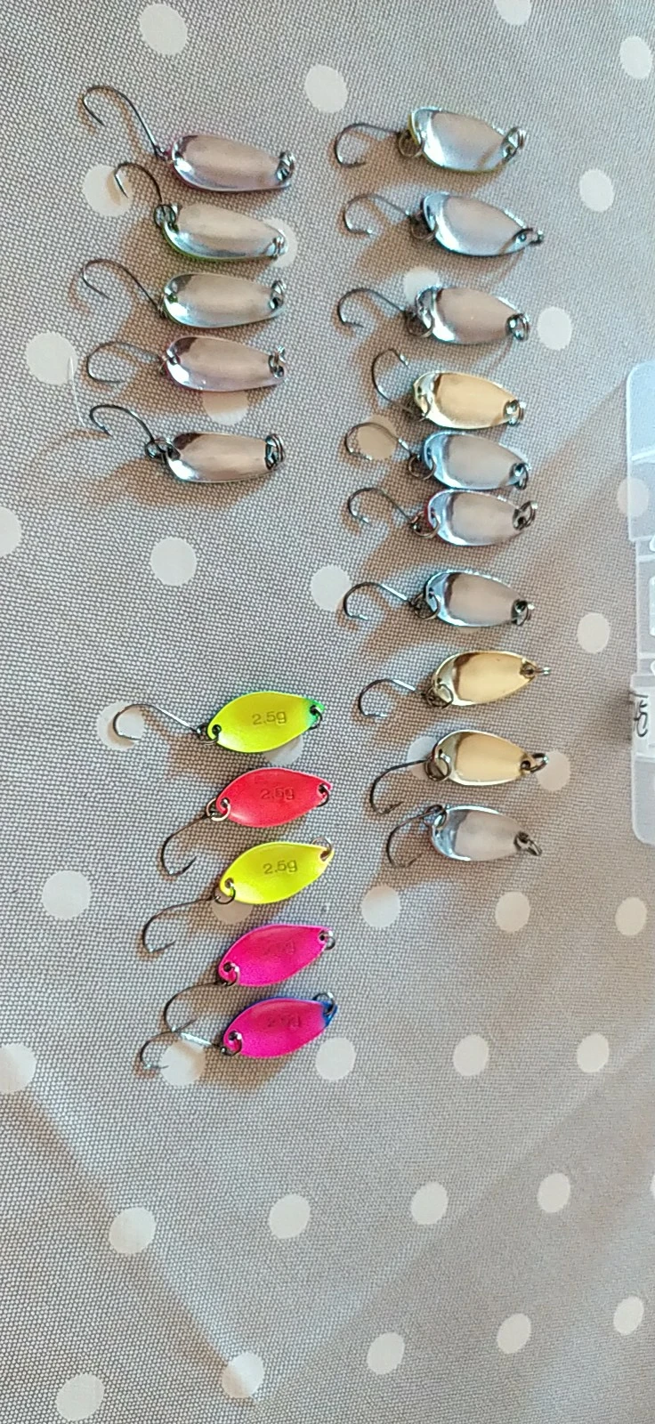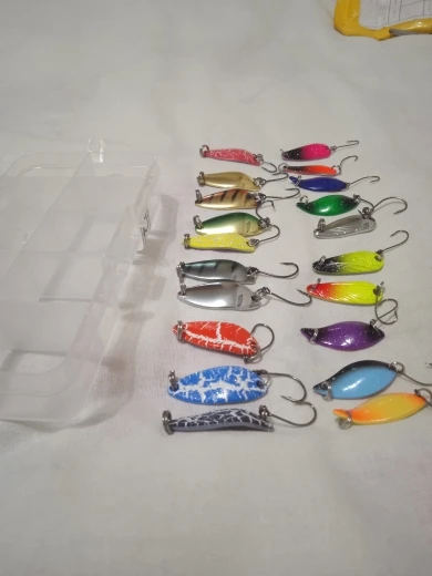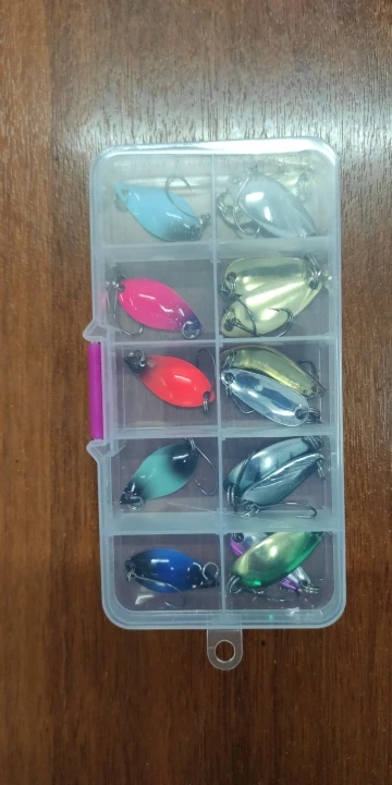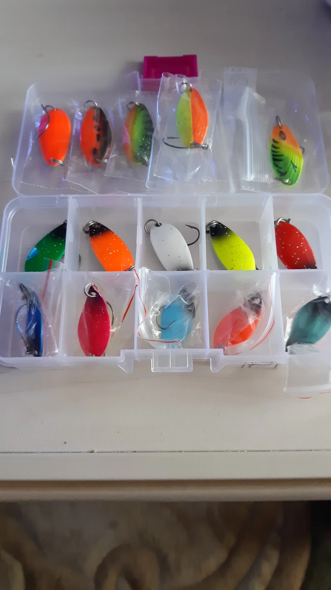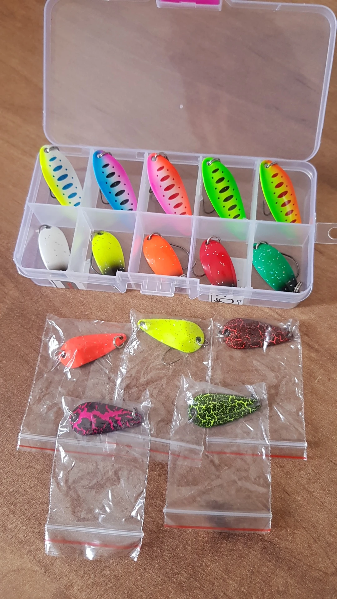 Хороший набор маленьких блесен-колебалок с одинарным крючком. Прибыли в Московскую область за 24 дня. Все хорошо