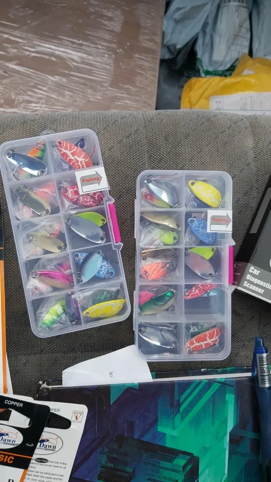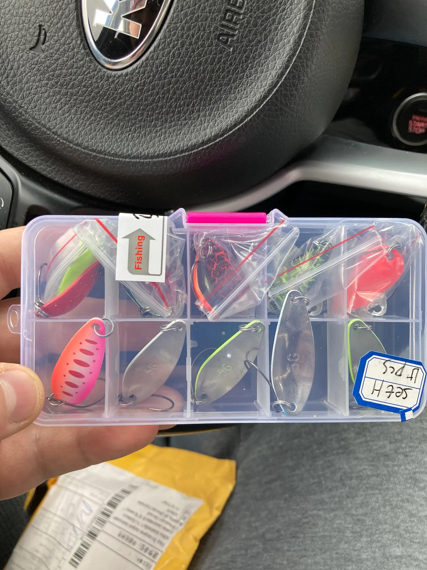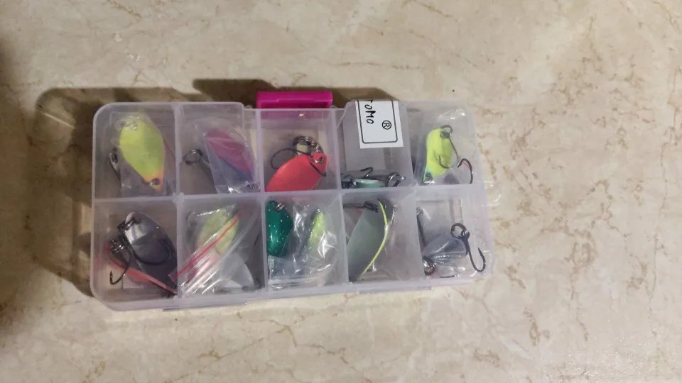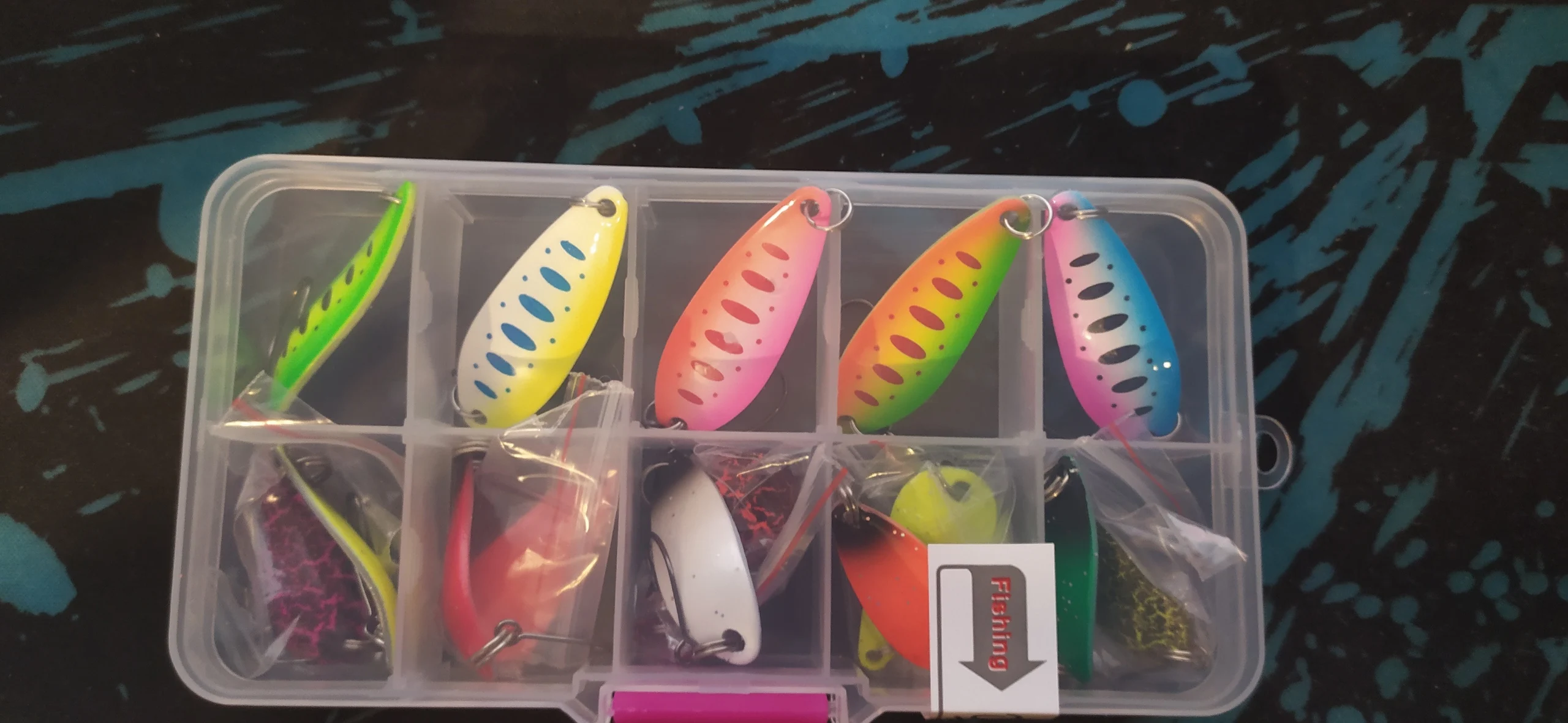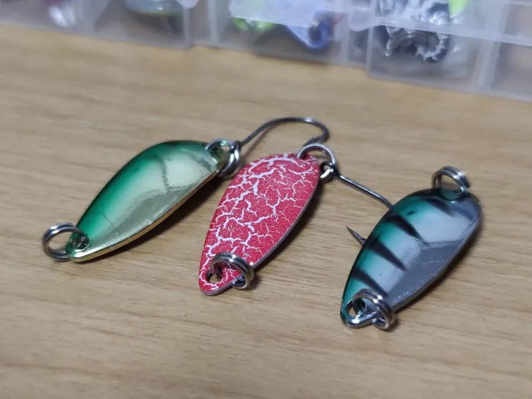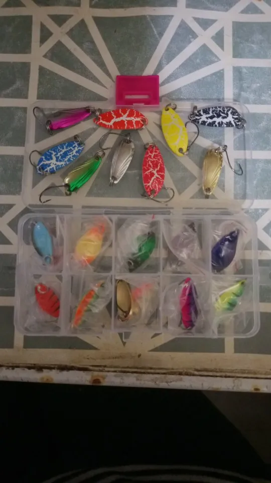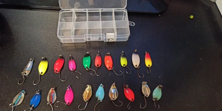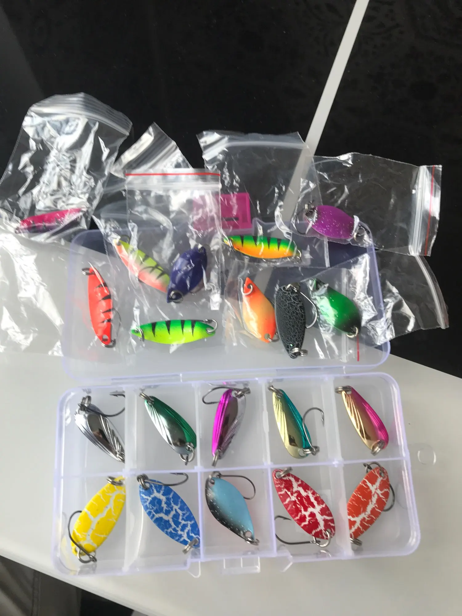 Хороший набор маленьких блесен-колебалок с одинарным крючком. Прибыли в Московскую область за 24 дня. Все хорошо