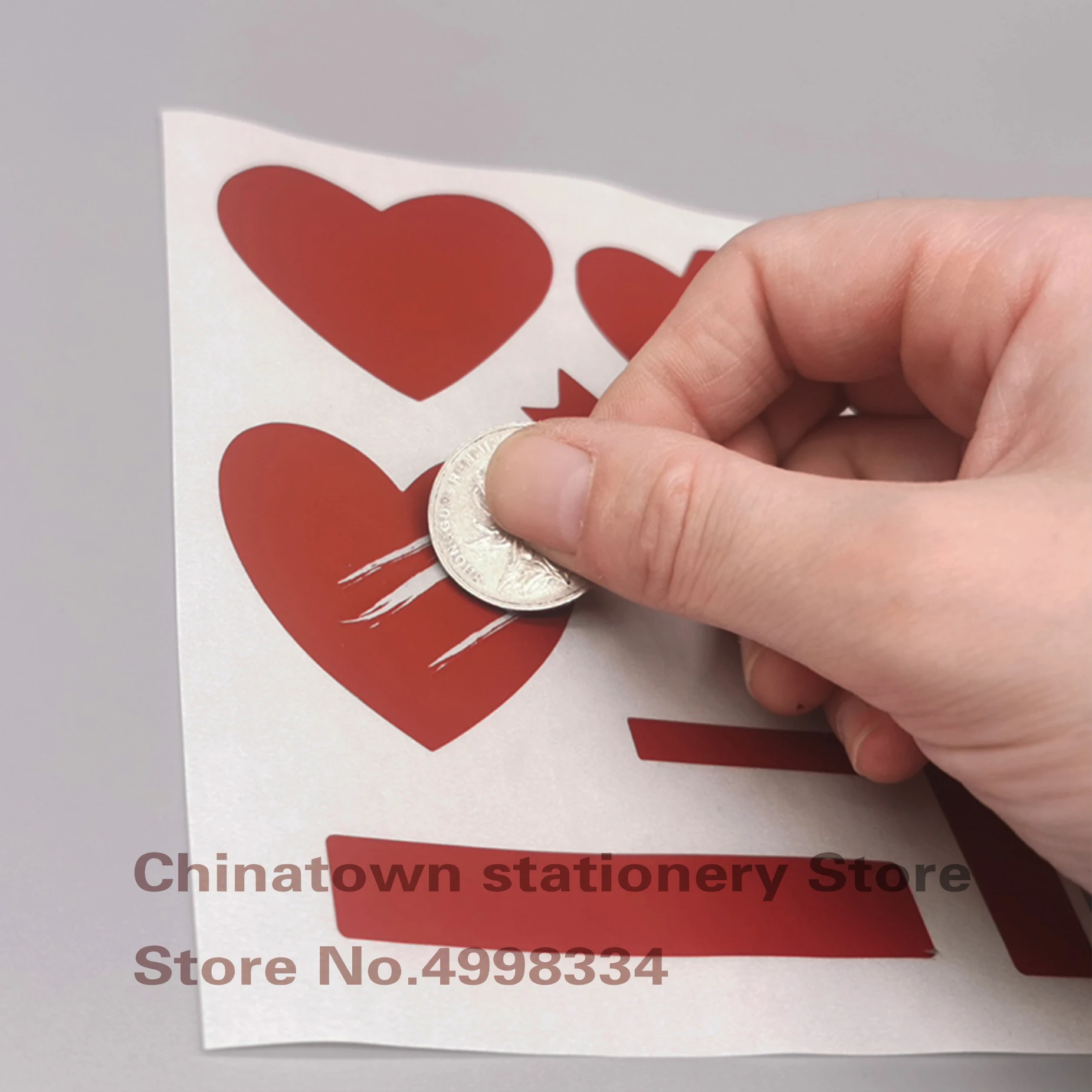 8 листов, царапины, наклейки в форме сердца, красный цвет, пустая Обложка для секретного кода, домашняя игра, свадебное сообщение