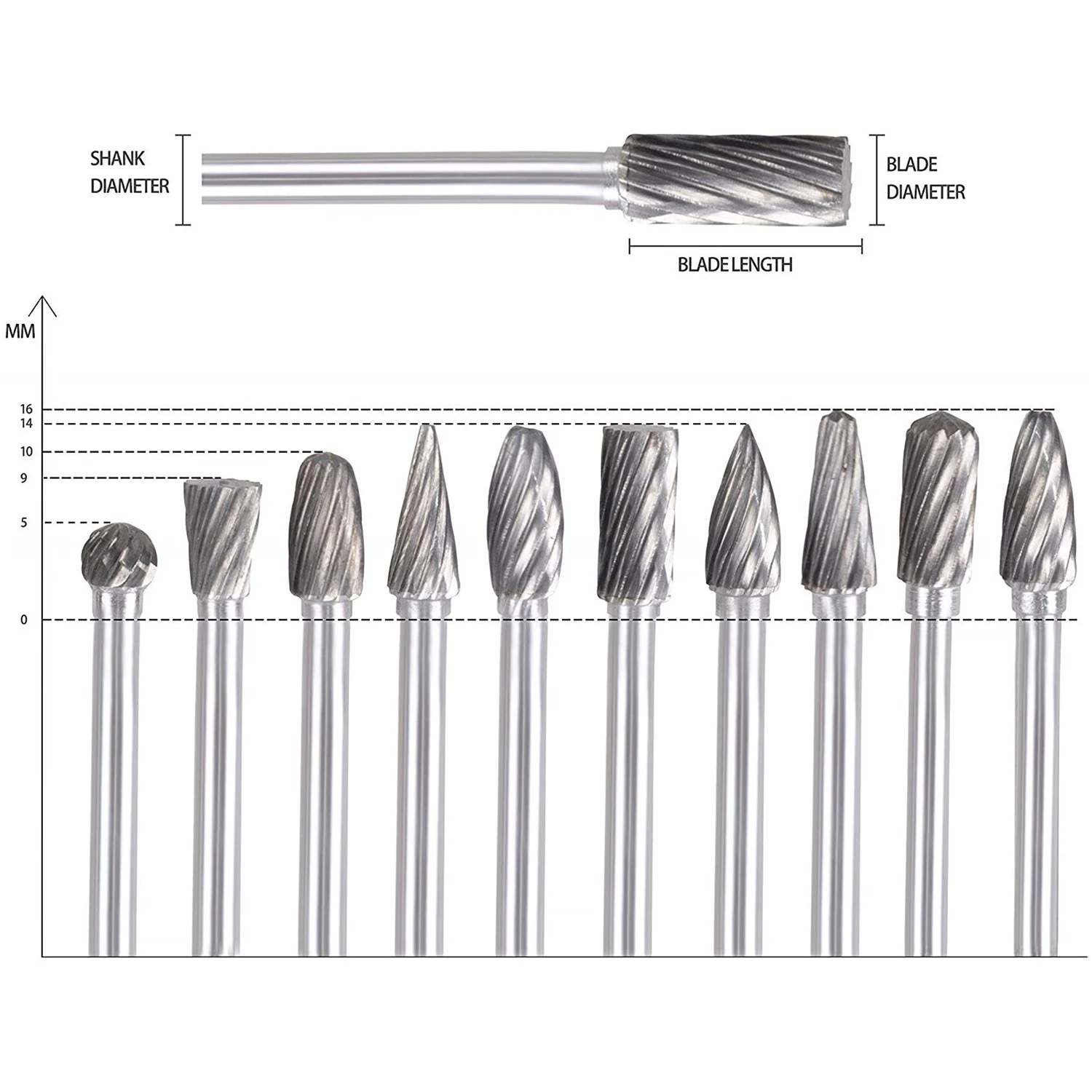 Карбид роторного заусенца в основном используется в электроинструментах или пневматических инструментах (также может быть установлен на станках), и скорость вождения, как правило, 6000-50000 об/мин.