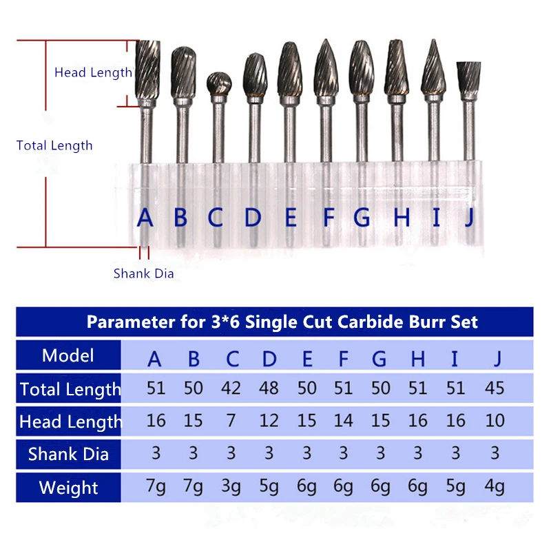 ◆ Название: 3 мм * 6 мм Карбид вольфрама заусенцы для роторной шлифовальной машины