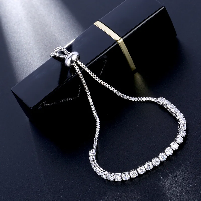Роскошный Теннисный браслет с кубическим цирконием, цепочка, кристалл, свадебный браслет для женщин, серебряный цвет, браслет, ювелирное изделие, Pulseira Feminina