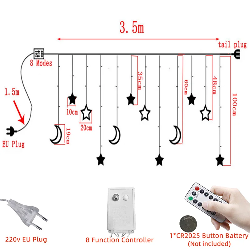 Гирлянда-занавес, 3,5 м, 220 В, в форме Луны, звезд