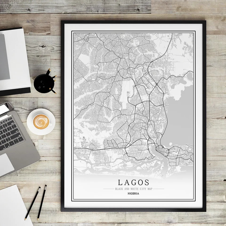 Креативная Карта города в Нигерии, Абуджа, абстрактные картины на холсте г., черно-белая Настенная картина, постер, картина для украшения дома