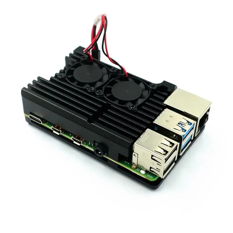 Чехол из алюминиевого сплава с двойным вентилятором для Raspberry Pi 4 Model B