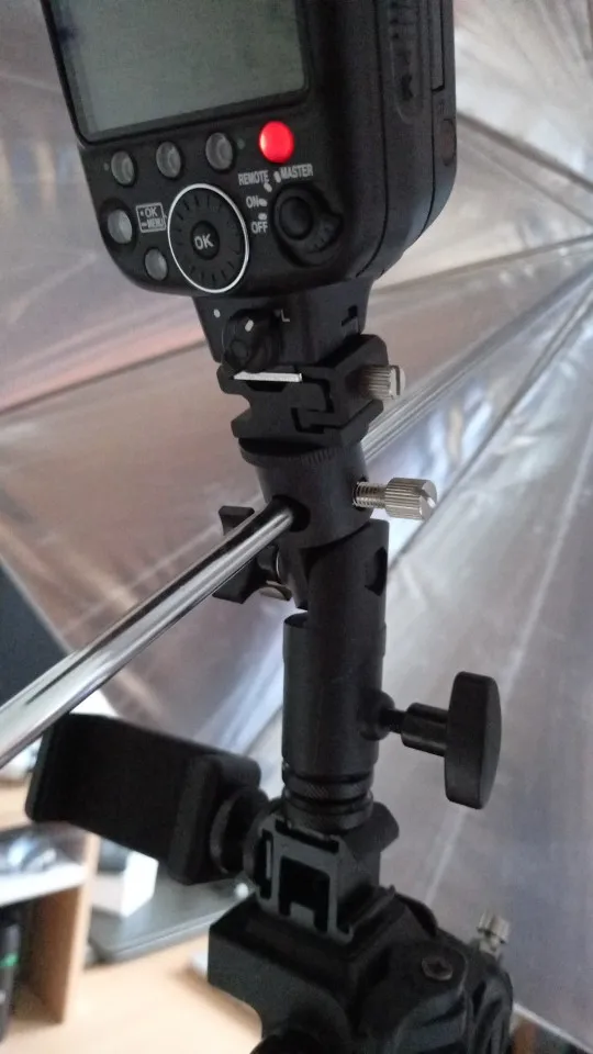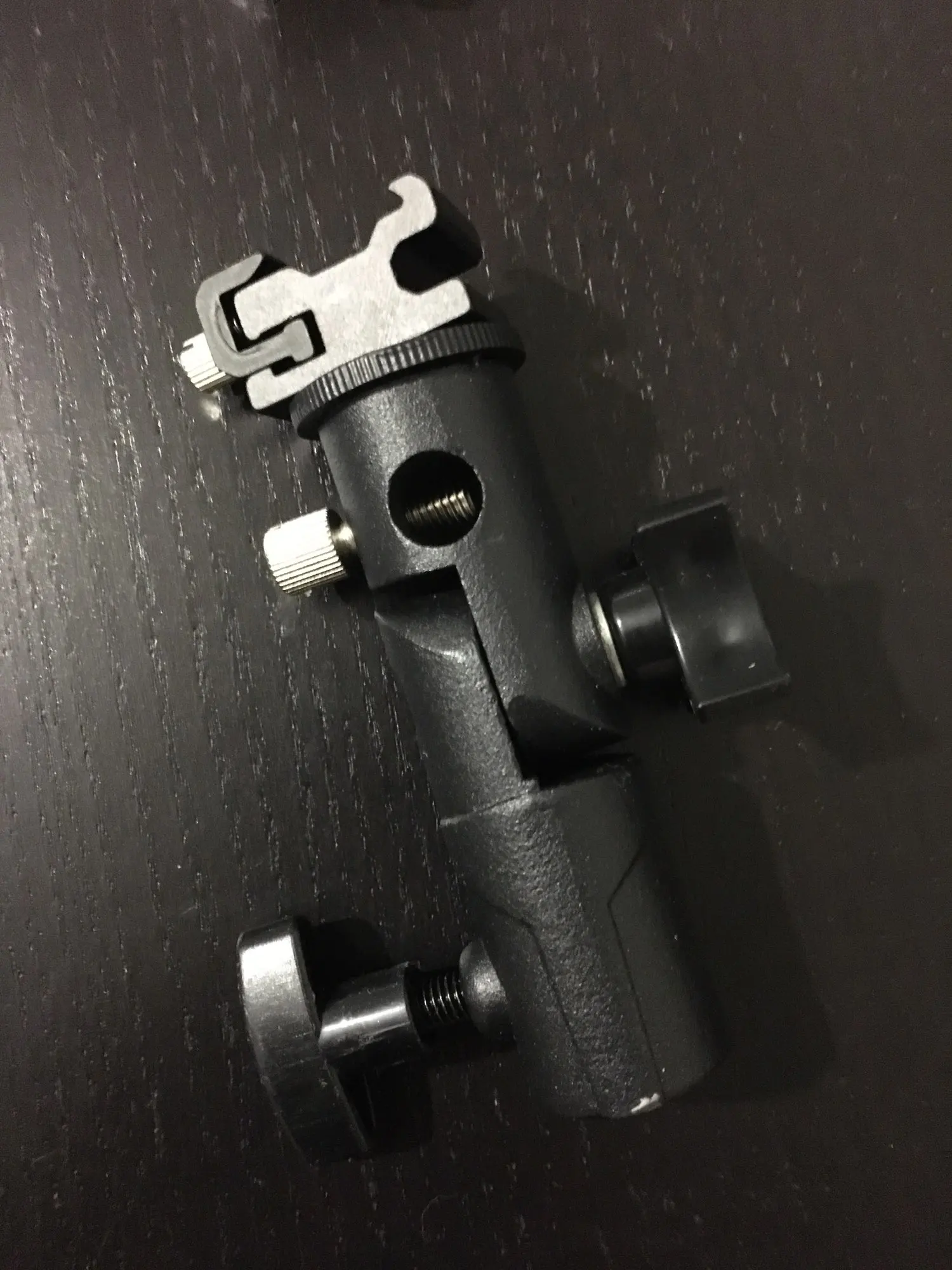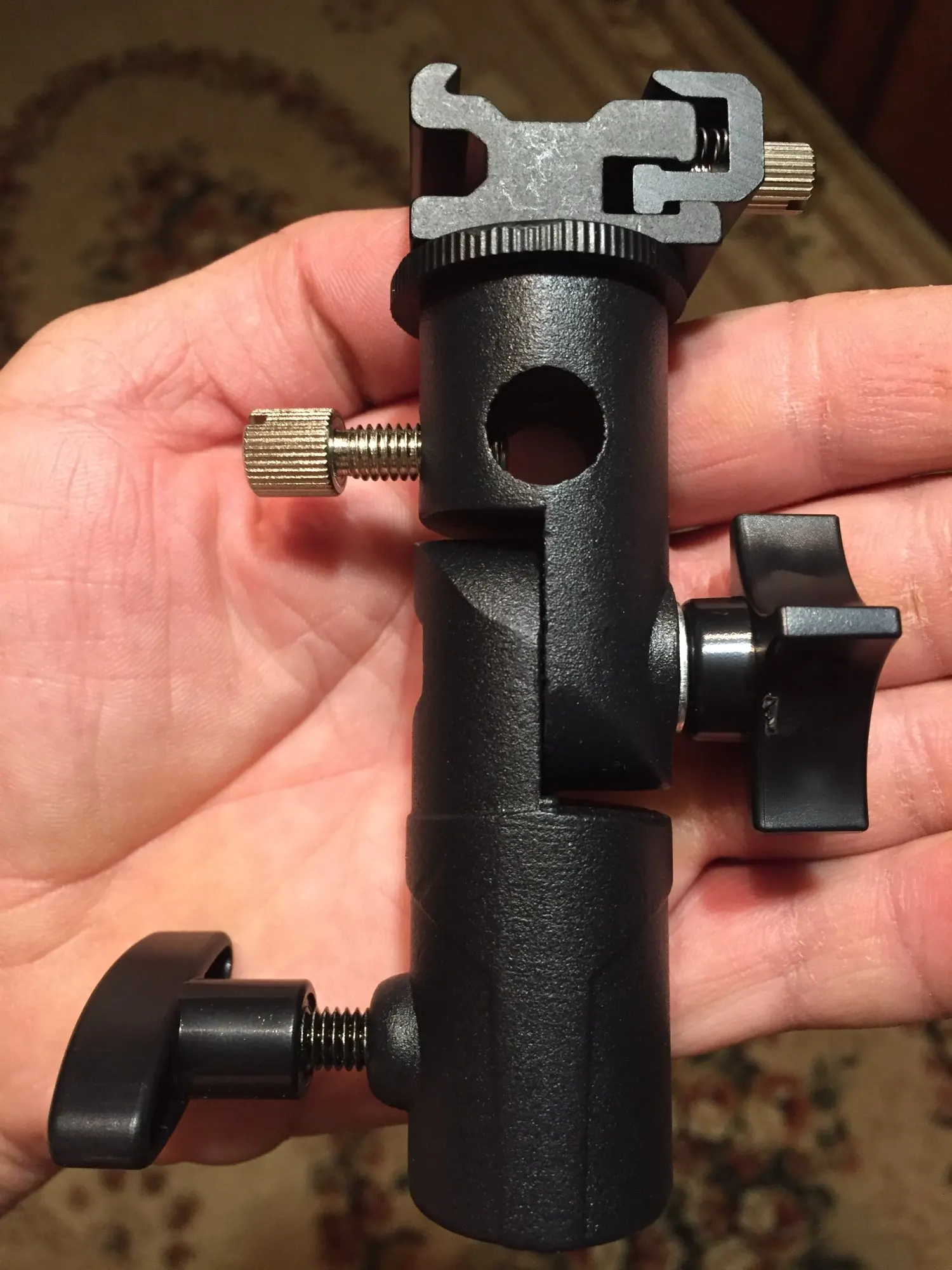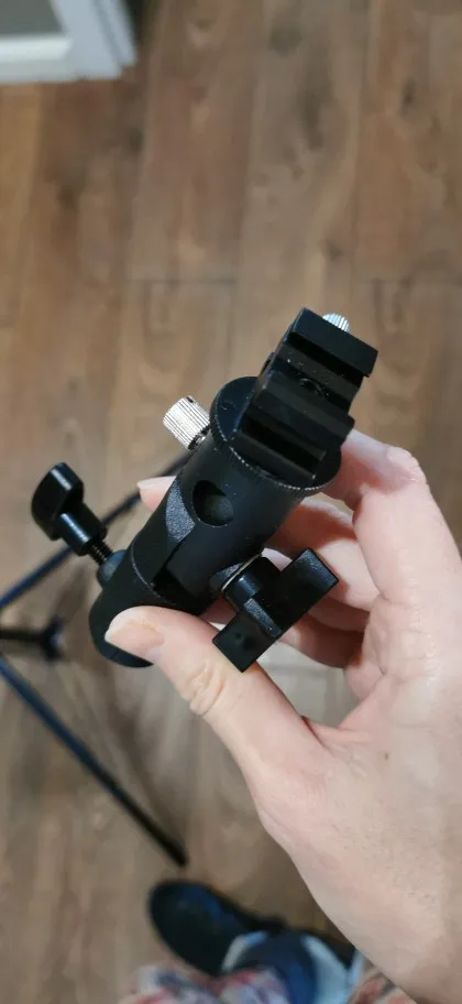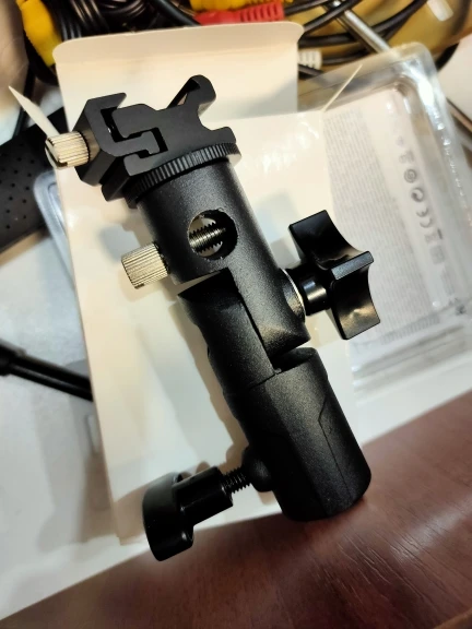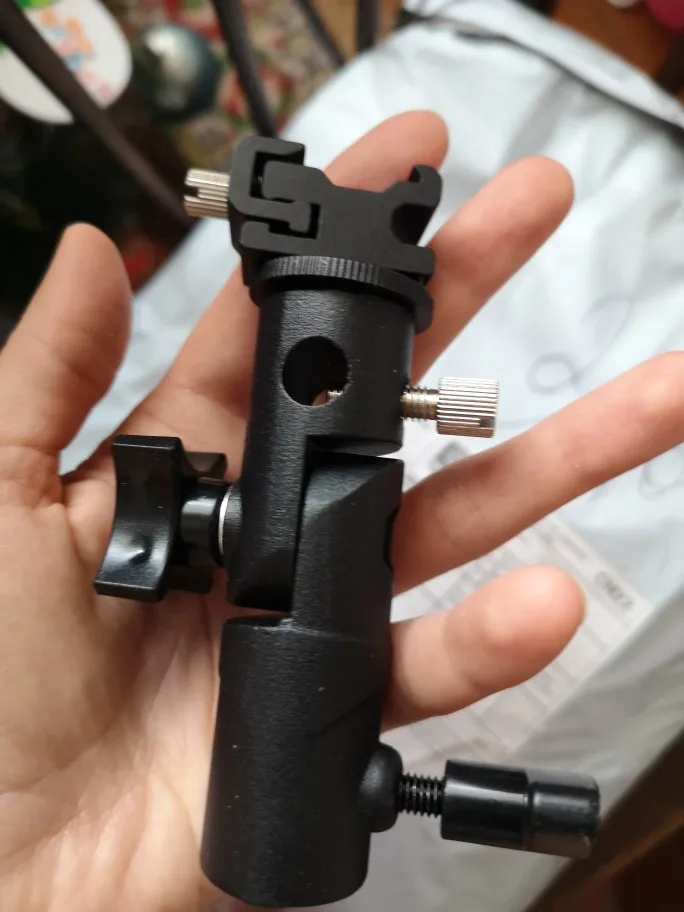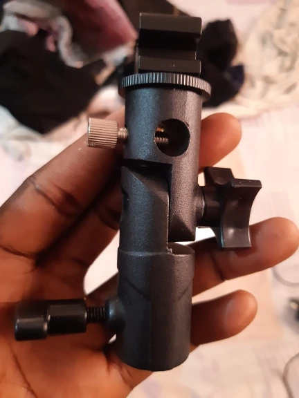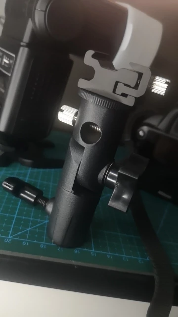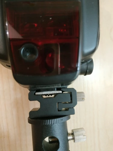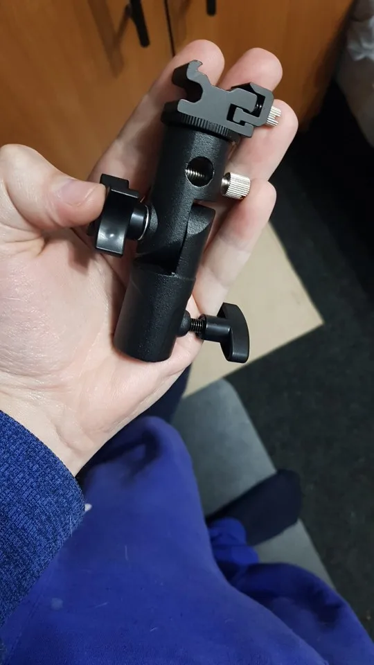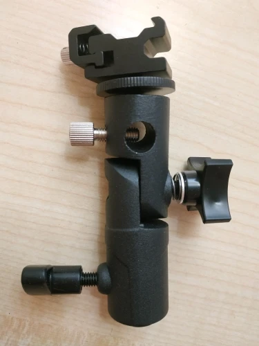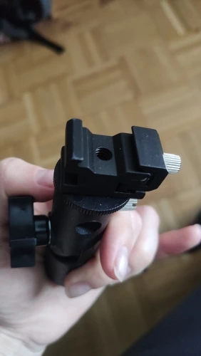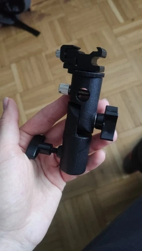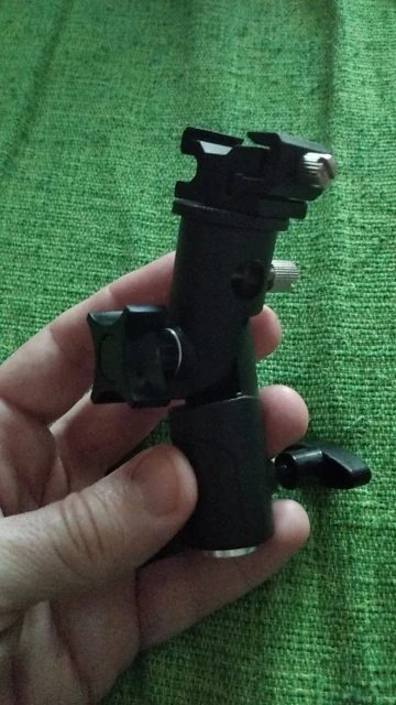 Хорошая вещь. Покупал, чтобы ставить внешнюю вспышку на штатив. Держится на штативе и держит вспышку крепко, ничего не шатается. Качественный материал, на ощупь похоже магниевый сплав.