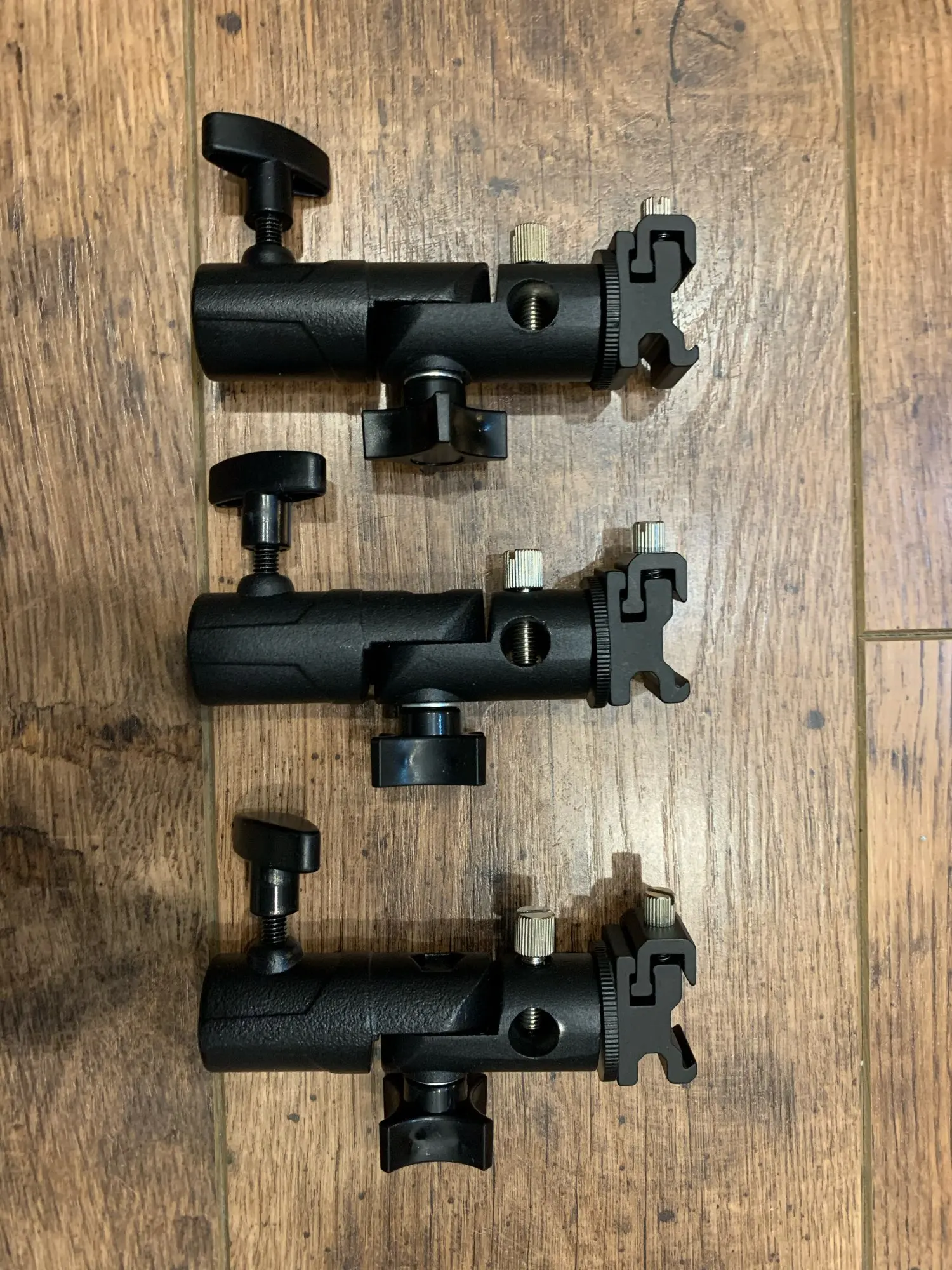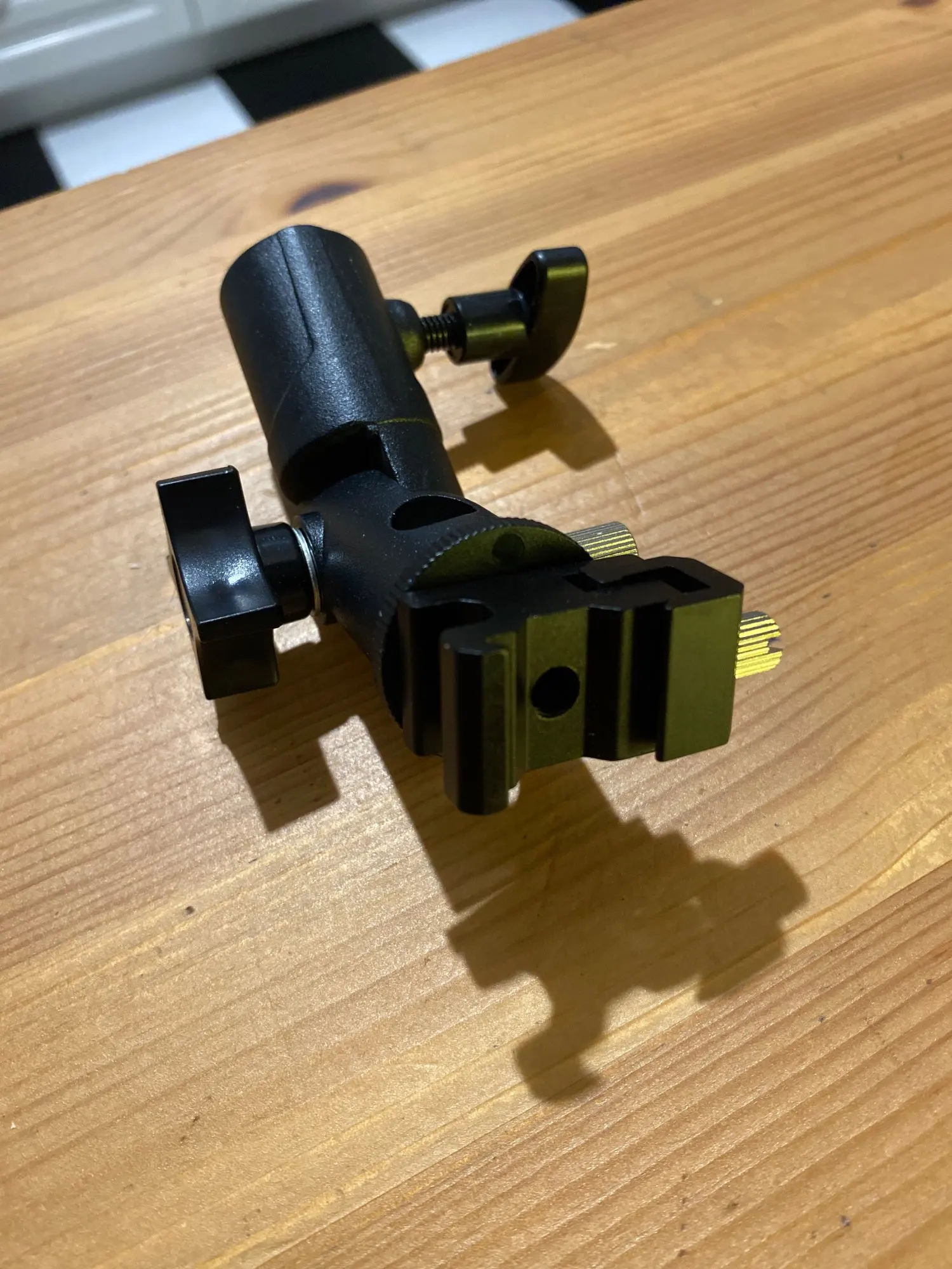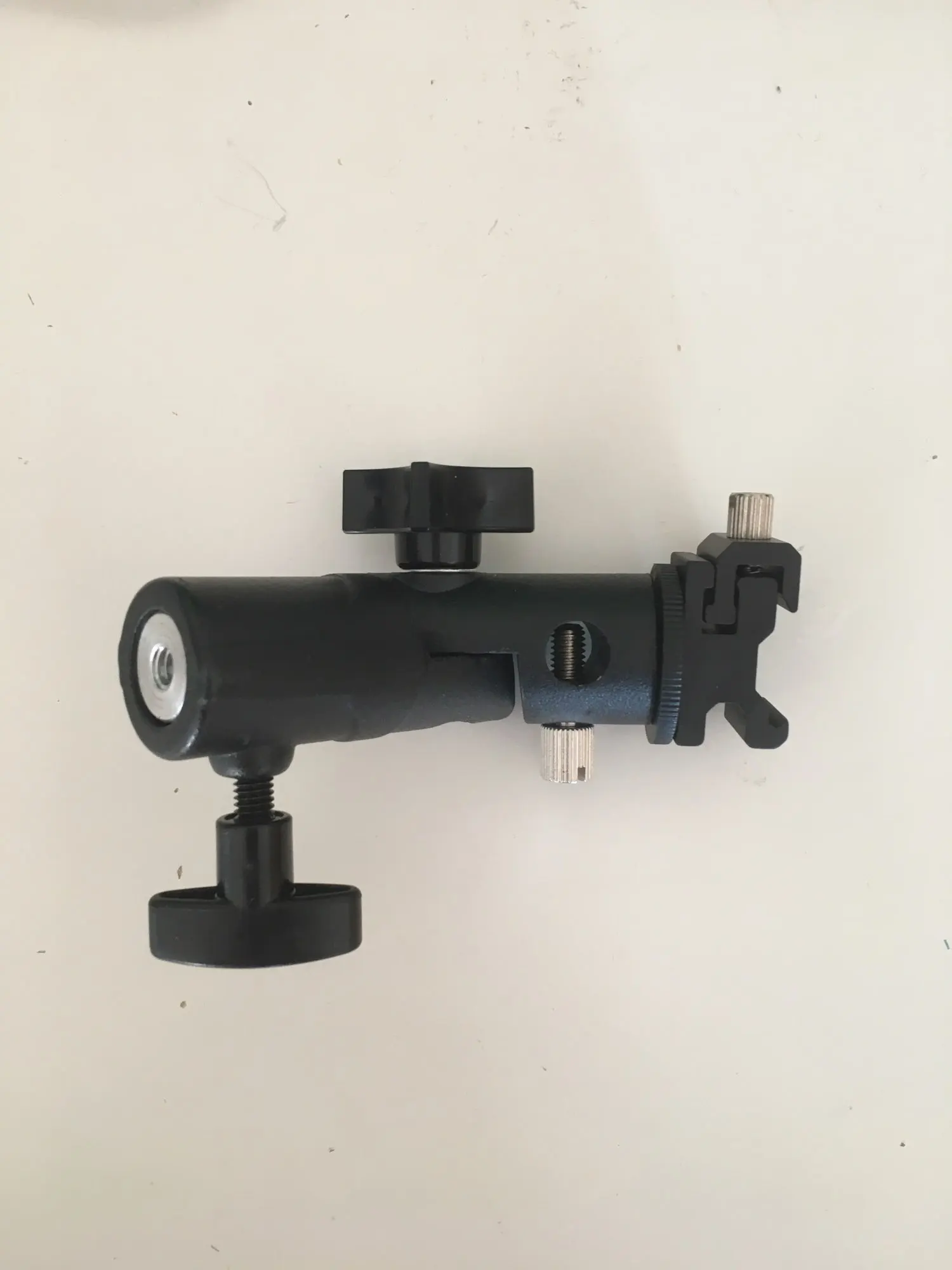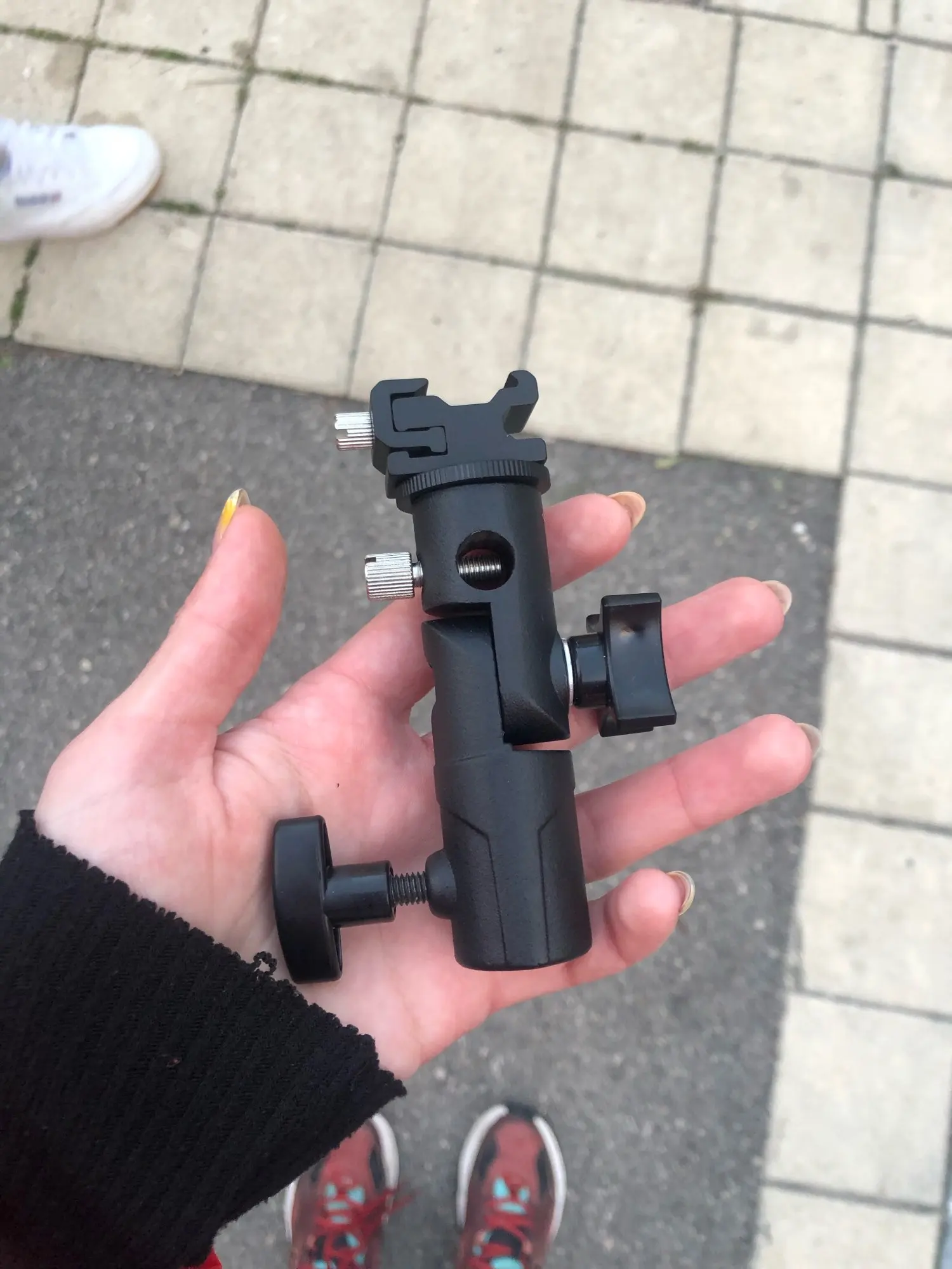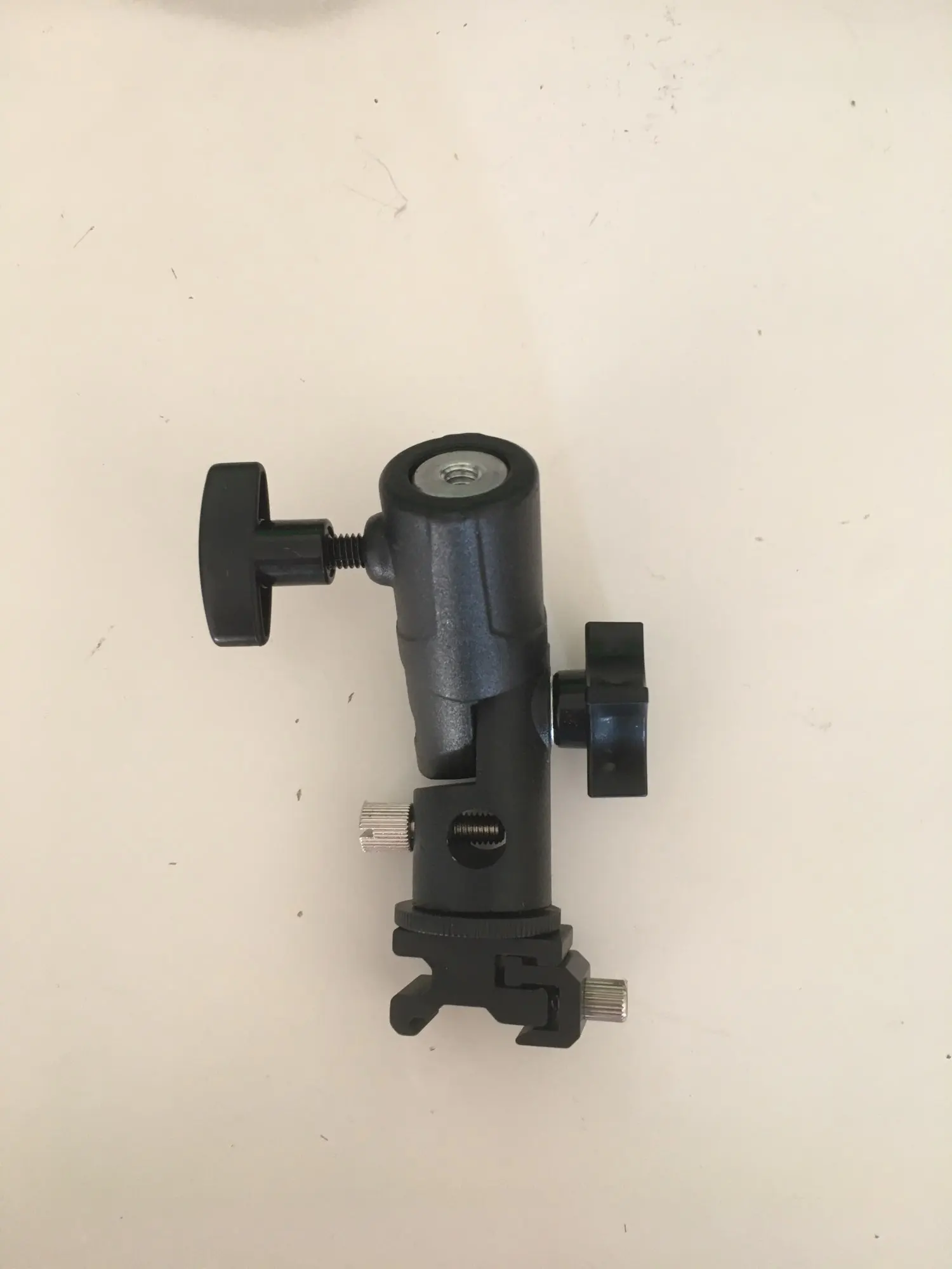 Хорошая вещь. Покупал, чтобы ставить внешнюю вспышку на штатив. Держится на штативе и держит вспышку крепко, ничего не шатается. Качественный материал, на ощупь похоже магниевый сплав.