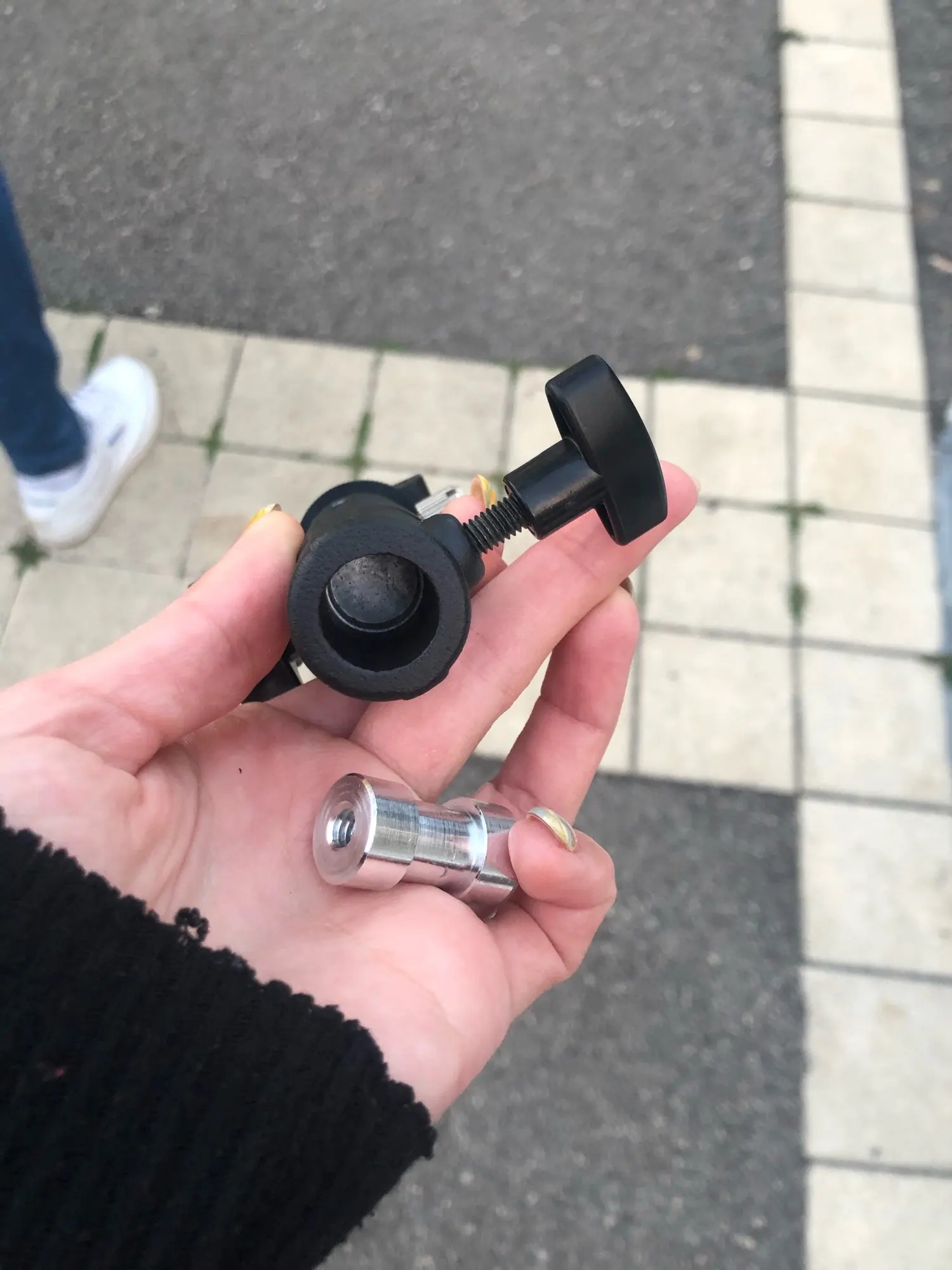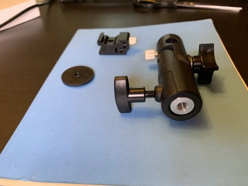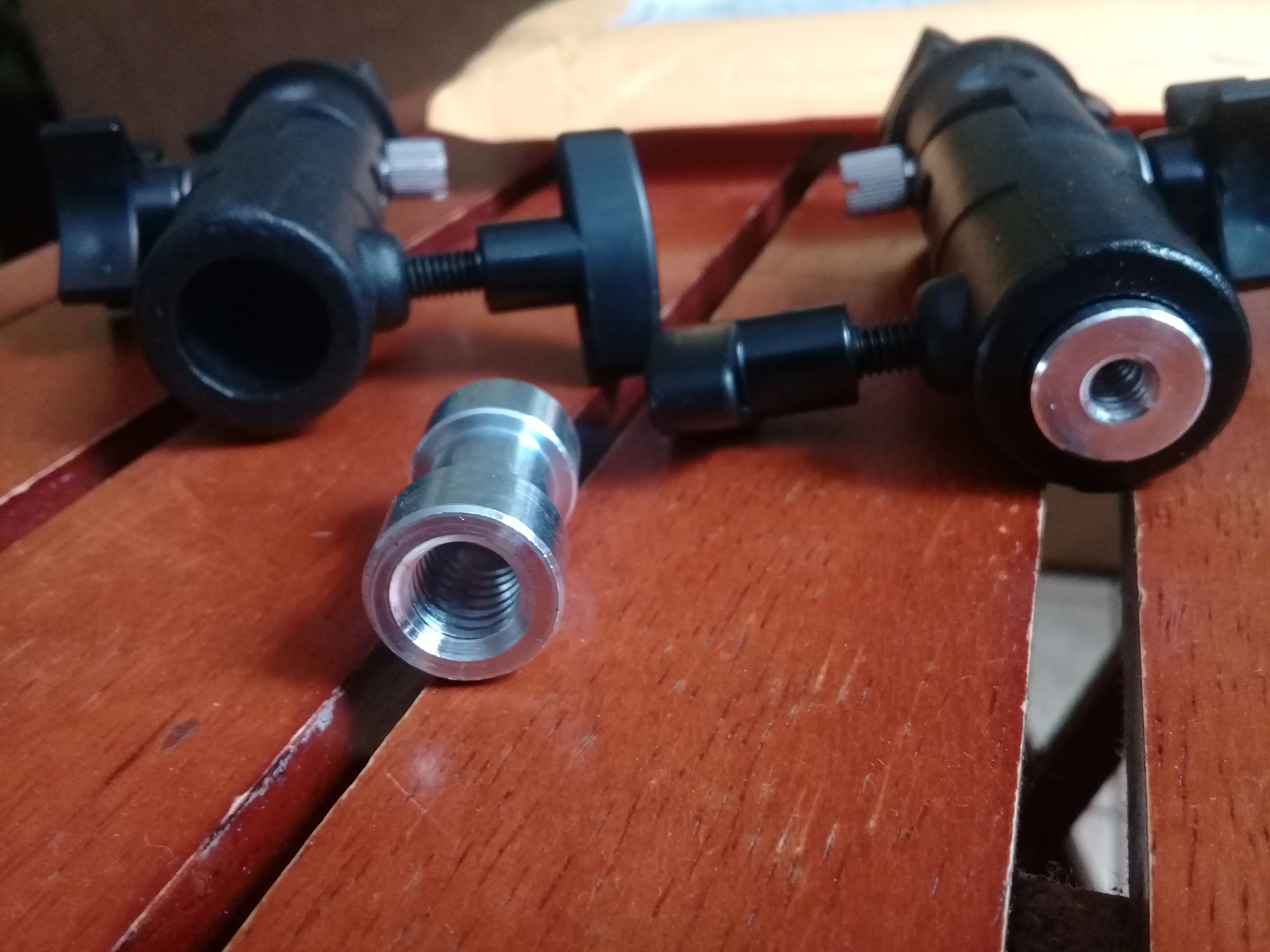 Классная вещь!! Полностью метал кроме двух фиксирующих винтов, они пластиковые но с виду крепкие, постороннего запаха нет. Фиксирует всё на Отлично! Втулка похожа на Алюминиевый сплав. Двух сторонняя разная по диаметру резьба. Подойдёт как для штатива так и для разных стоек. Номерок отслеживался в приложении Почта РФ до пункта назначения. С продавцом не общался, но всё равно от души Спасибо за качественный продукт! Доставка примерно месяц в Ростовскую область г. Батайск. Вообщем советую всем!!