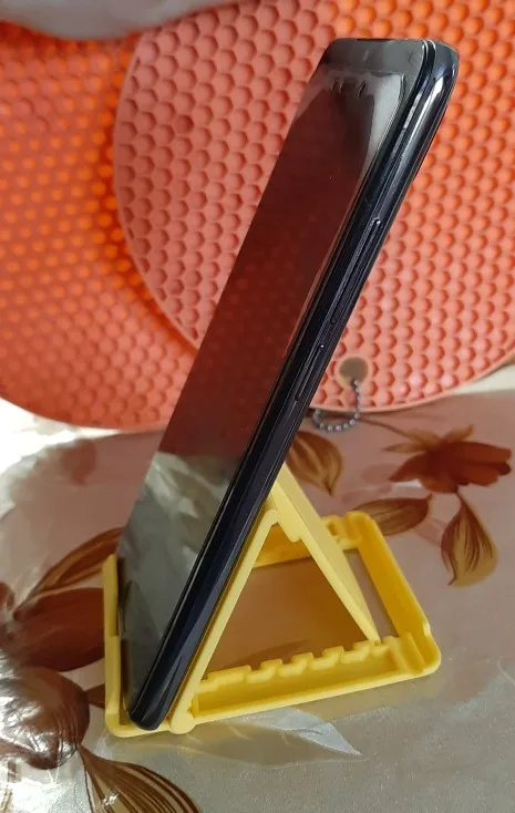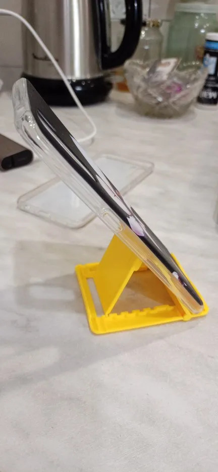 Хорошая подставка, яркая, устойчивая, хотя она и кажется крошечной по сравнению со смартфоном. Угол наклона меняется легко, но мне подходит только последний, чтобы смарт не рисковал нырнуть вниз) Ещё, как вариант, можно использовать выемку в самом конце, так наклон будет сильнее, и сцепление надёжнее. У меня спинка, которая меняет угол, несколько выгнута дугой, из-за чего маленькие выступы подлетают и не особо цепляются за выемки. Помогает вес смарта, прижимает. Но в целом подставка не складывается во время использования. В чехле смарт держится собственно за сам чехол, без него держится лучше. С толщиной чехла влазит, всё норм. Доставка полтора месяца без отслеживания, отправили через 2 дня после заказа.