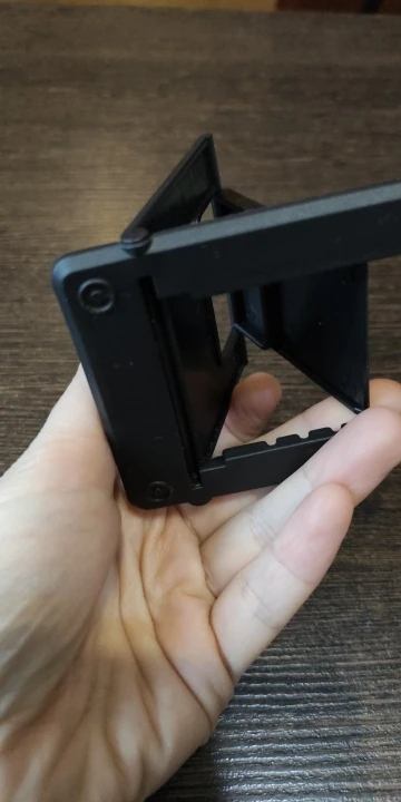 Хорошая подставка для телефона. Компактно складывается. Угол наклона регулируется.