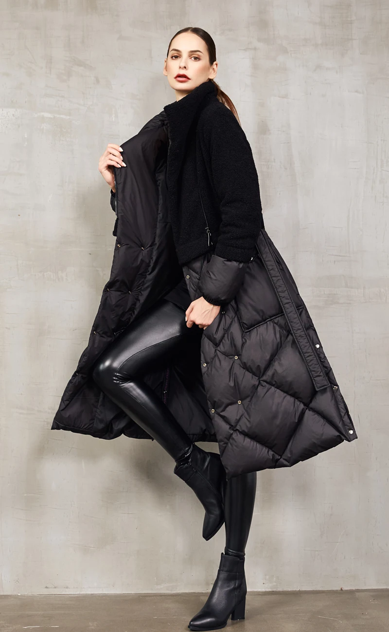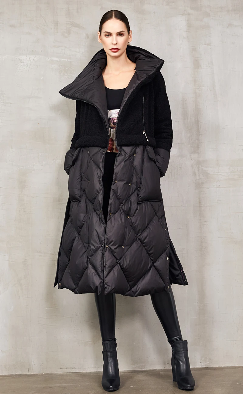 Пуховик женский зимний на утином пуху, с отделкой овечьим мехом, F354