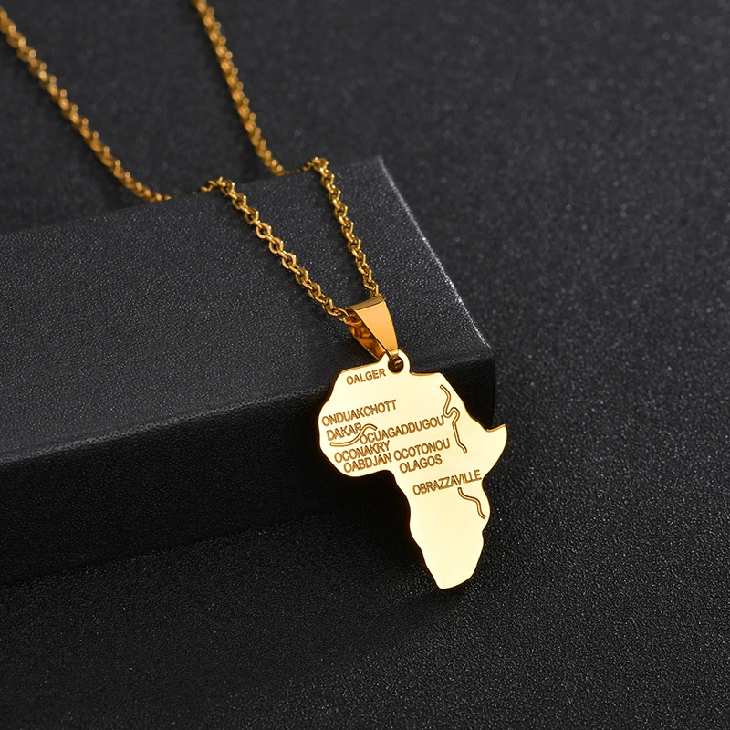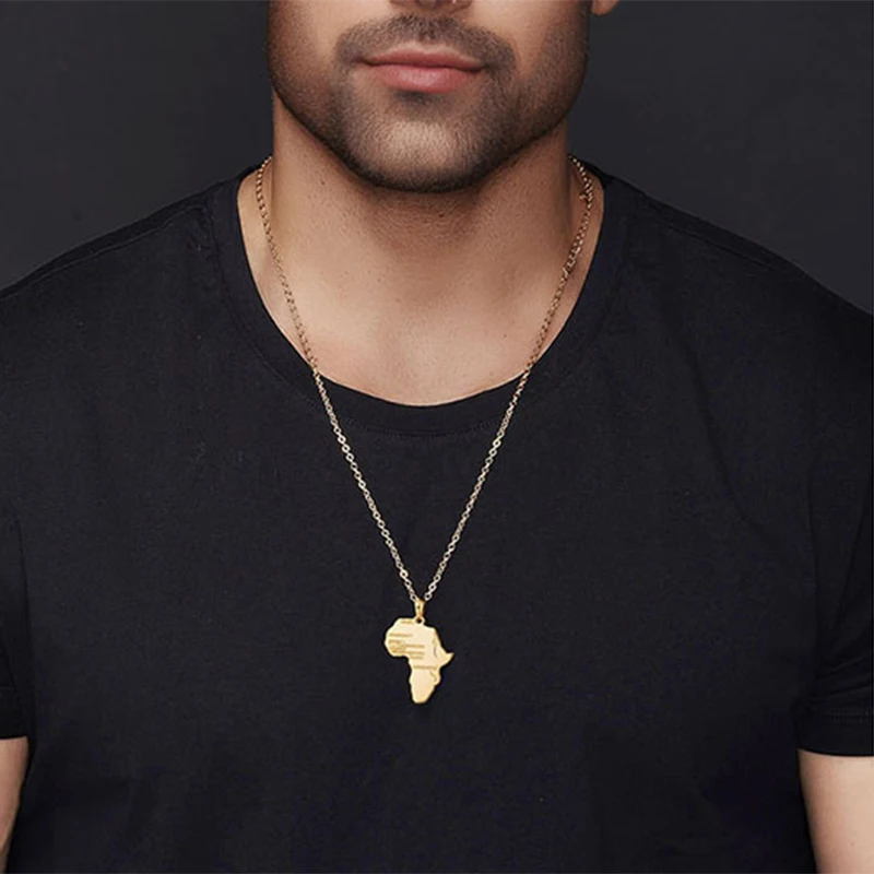 ЖенскоеМужское ожерелье с подвеской в стиле хип-хоп, вечерние ювелирные изделия из нержавеющей стали с изображением карты Африки