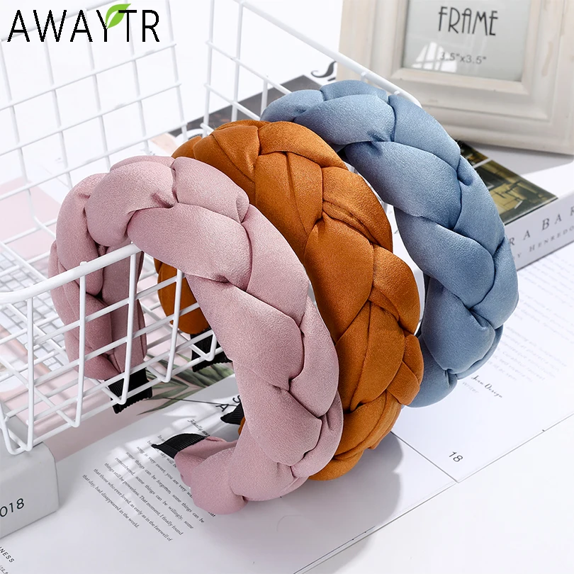 Ободок для волос женский AWAYTR, плотный Плетеный плетеные головные повязки, однотонный, из ткани, аксессуар для волос