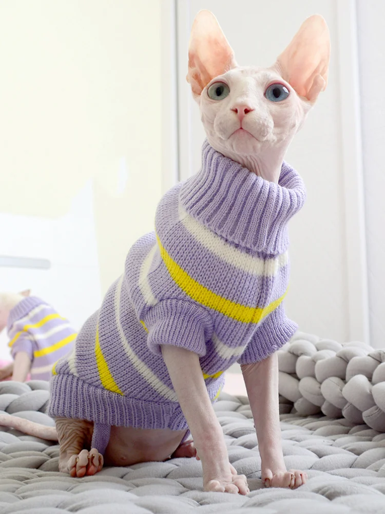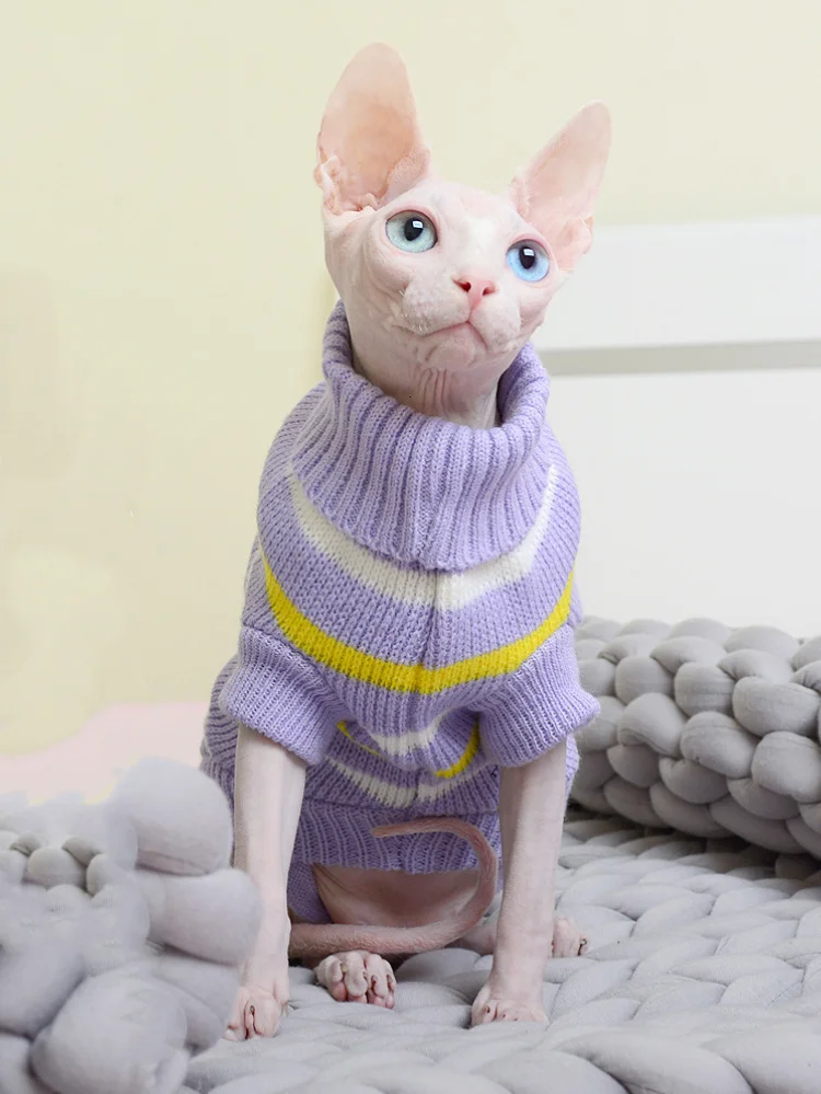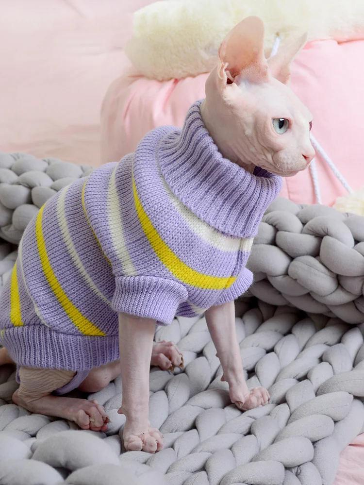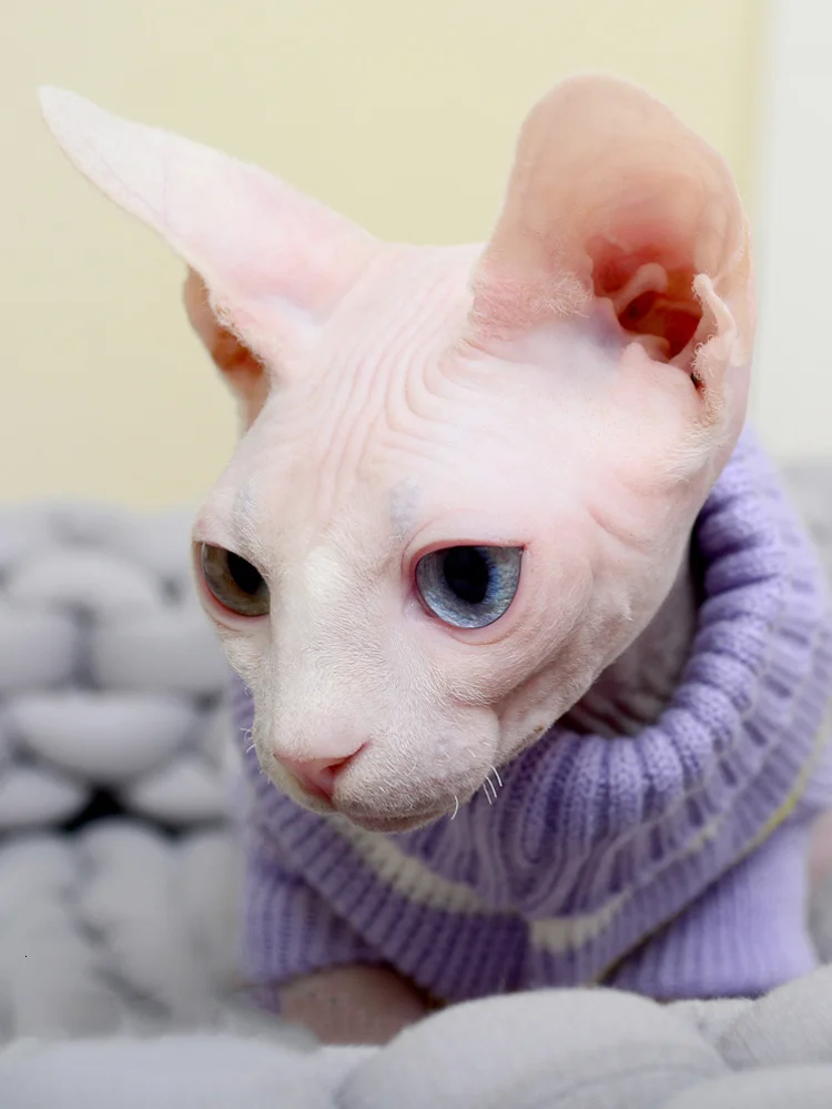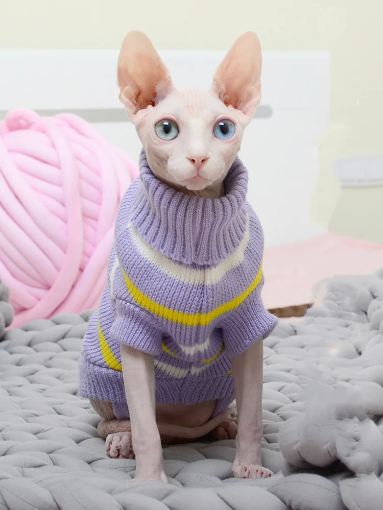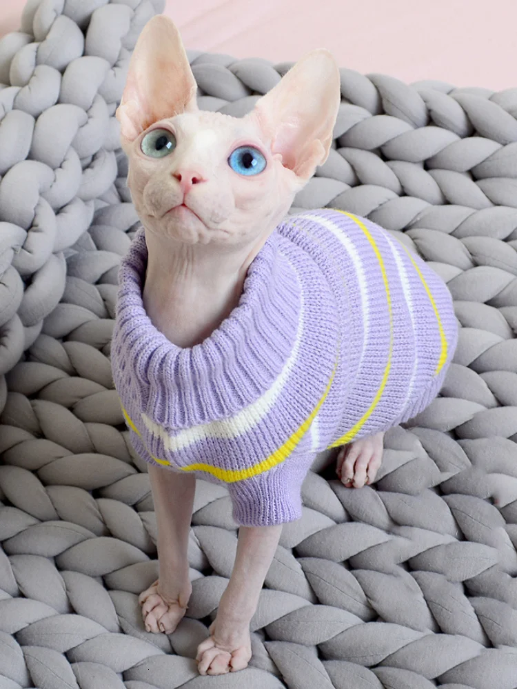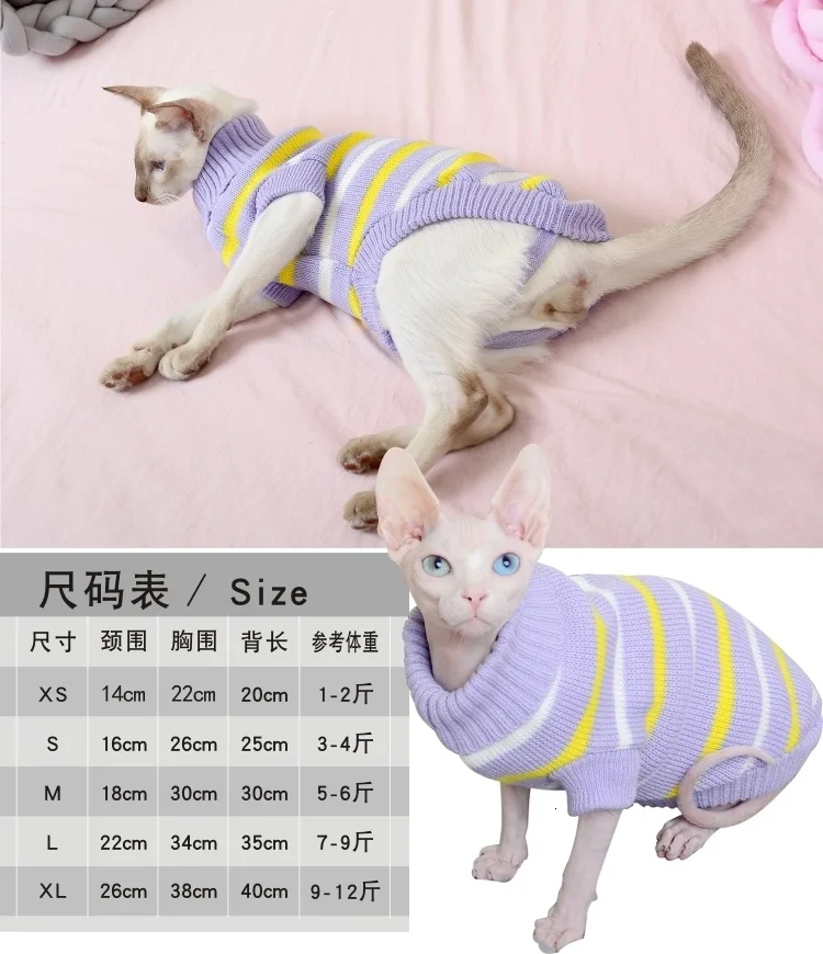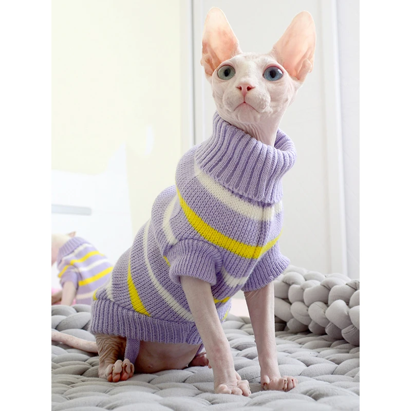 Одежда для кошек; Теплый вязаный свитер с изображением кота девона; Зимняя одежда ручной работы без волос с изображением Сфинкса