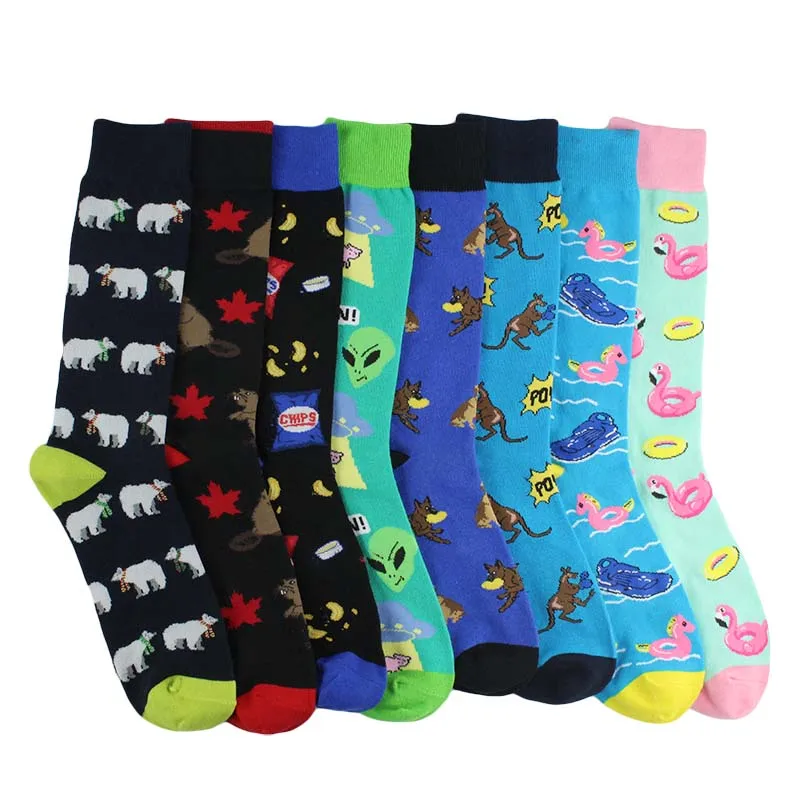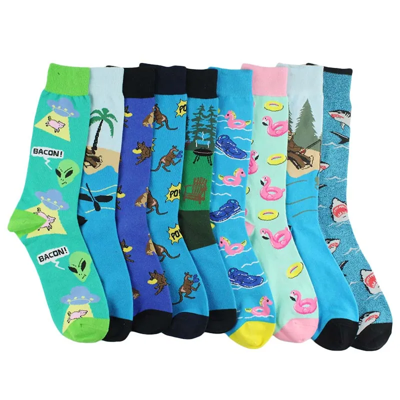 Необычные птица, белка, Инопланетные носки, чесаные мужские новые дизайнерские носки для пиццы, скейтборда, мужские носки