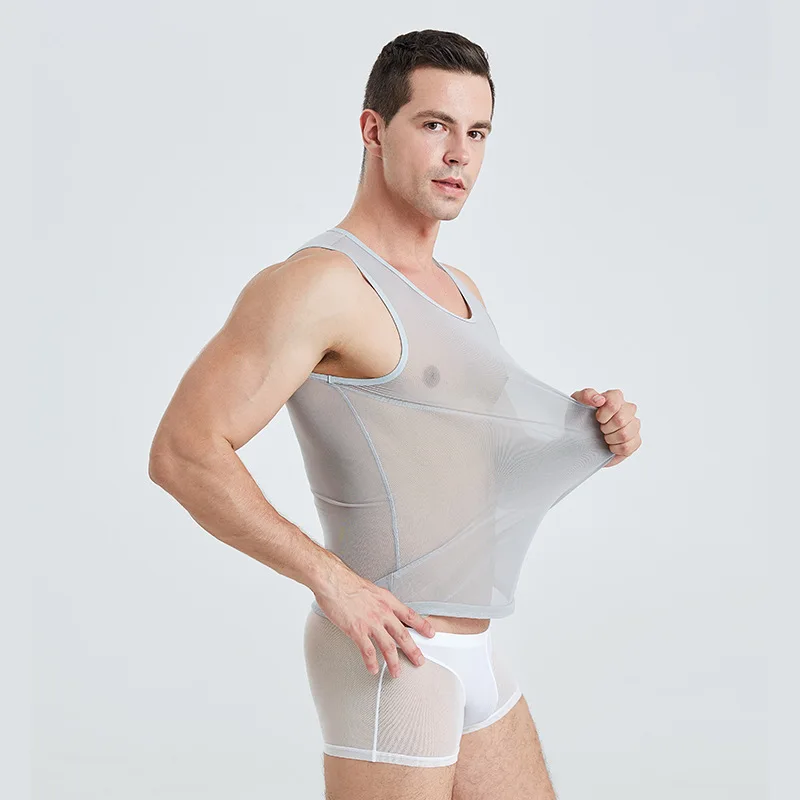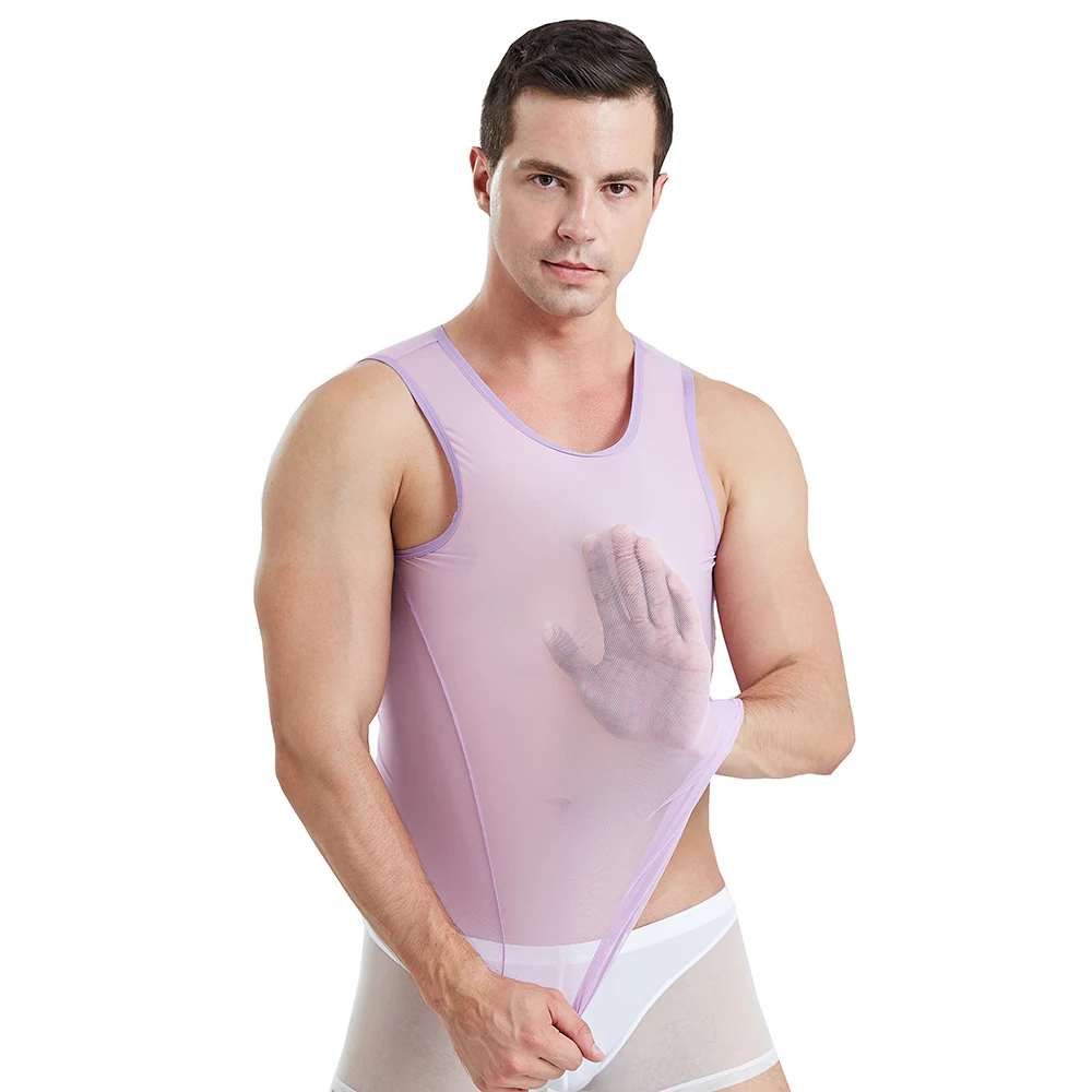 Майка мужская сетчатая эластичная, пикантный дышащий прозрачный жил...