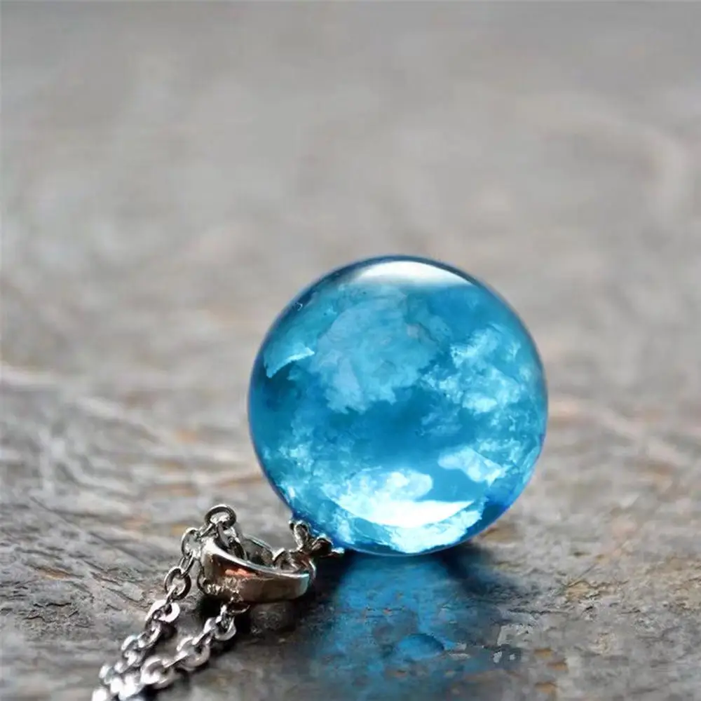 Ожерелье с подвеской в виде шара из смолы с голубым небом и белым о...