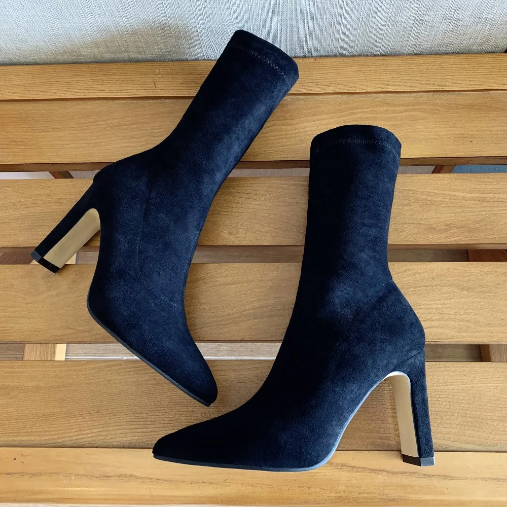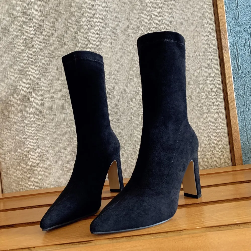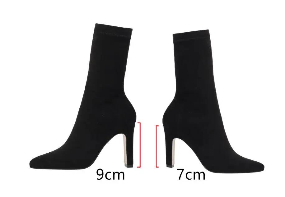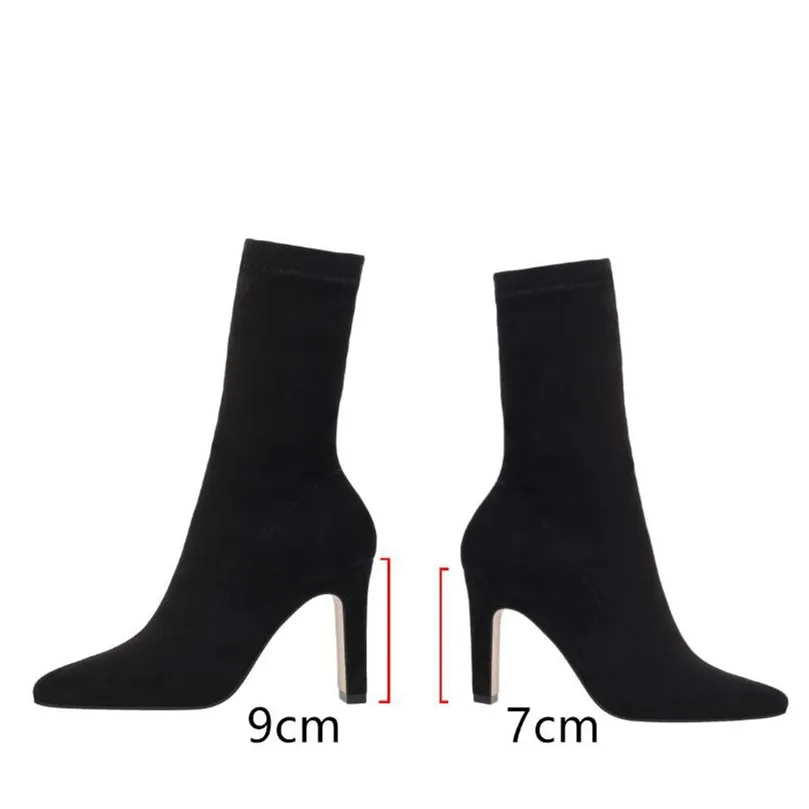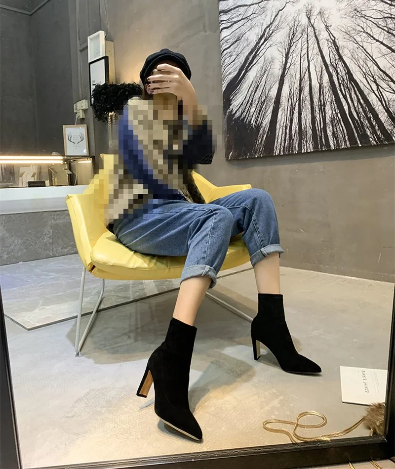 Женские ботинки-носки EOEODOIT, осенне-зимние ботинки на высоком каблуке, с острым носком, без застежек, пикантные ботинки-лодочки с плюшевой подкладкой