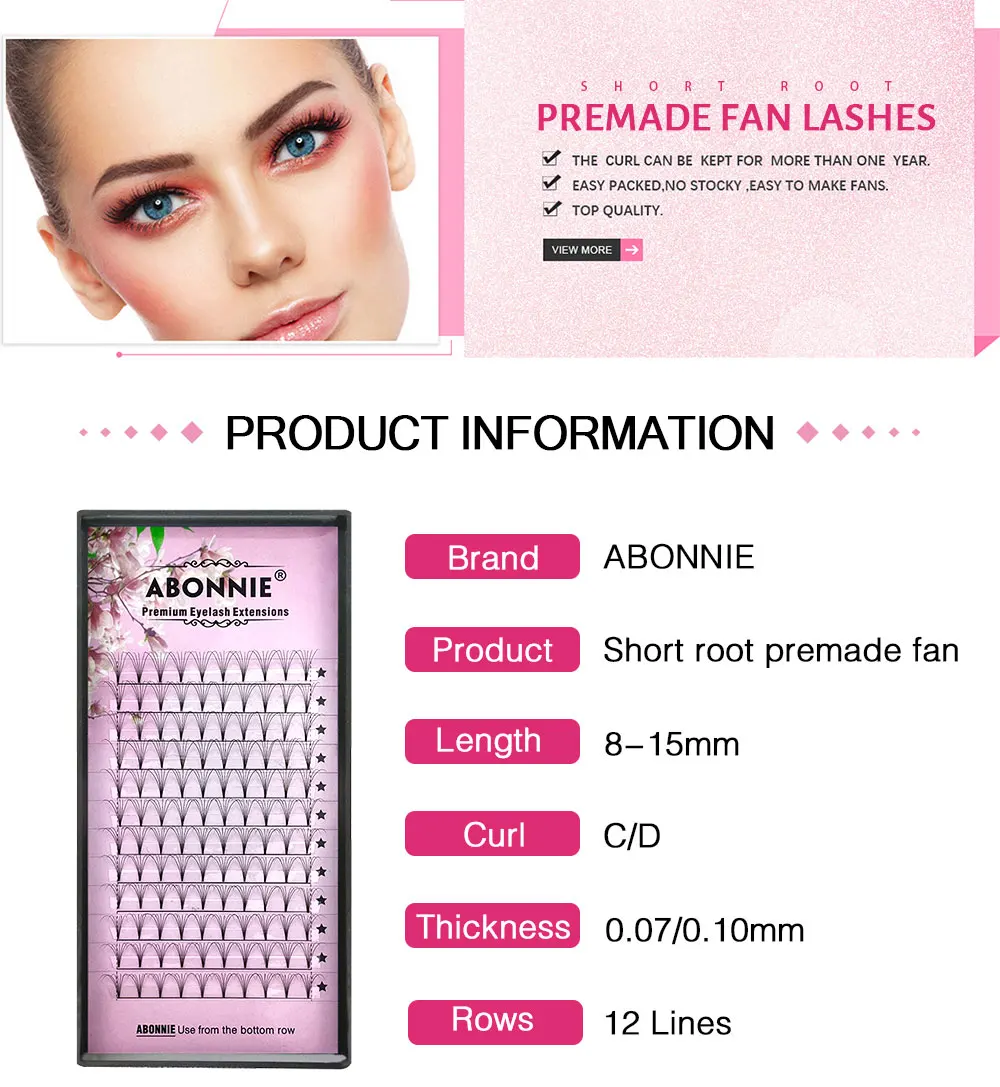 Ресницы для наращивания Abonnie, искусственная норка, 12 линий, 0,070,10