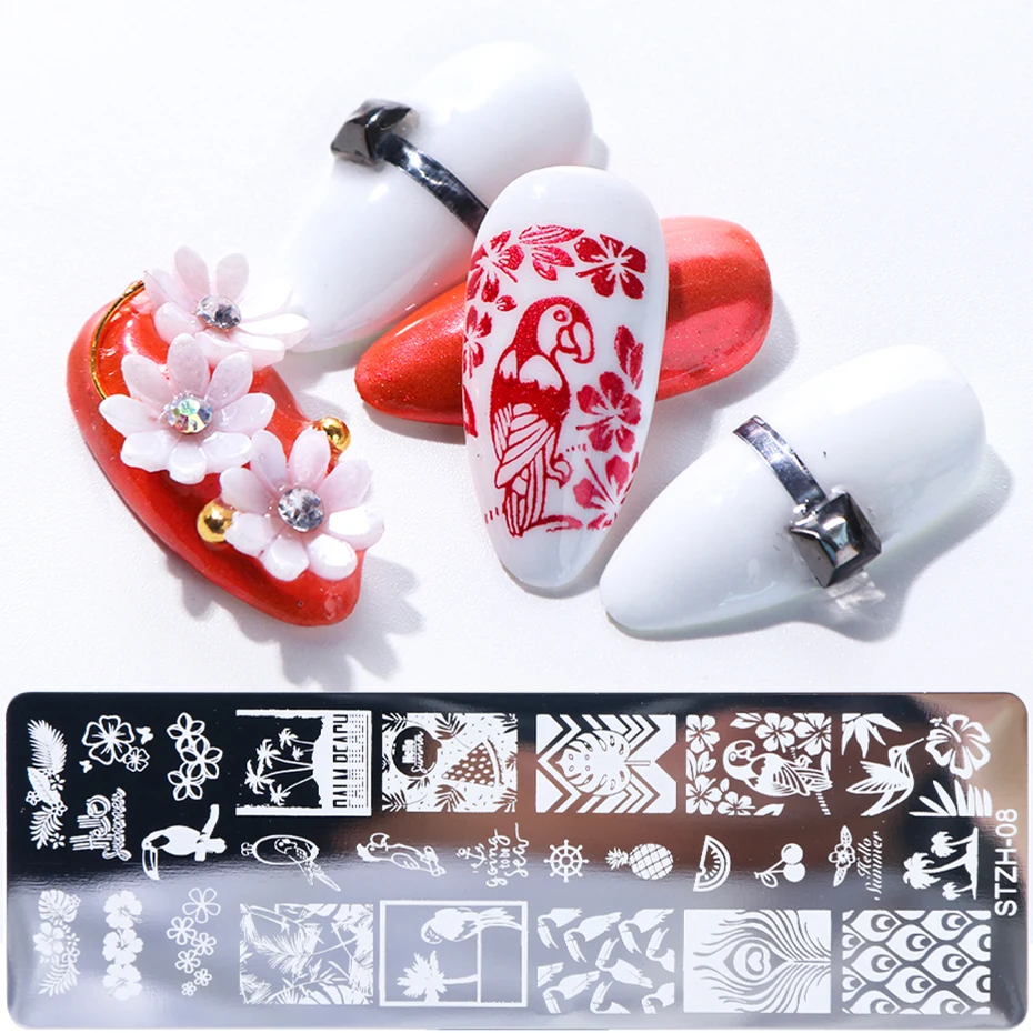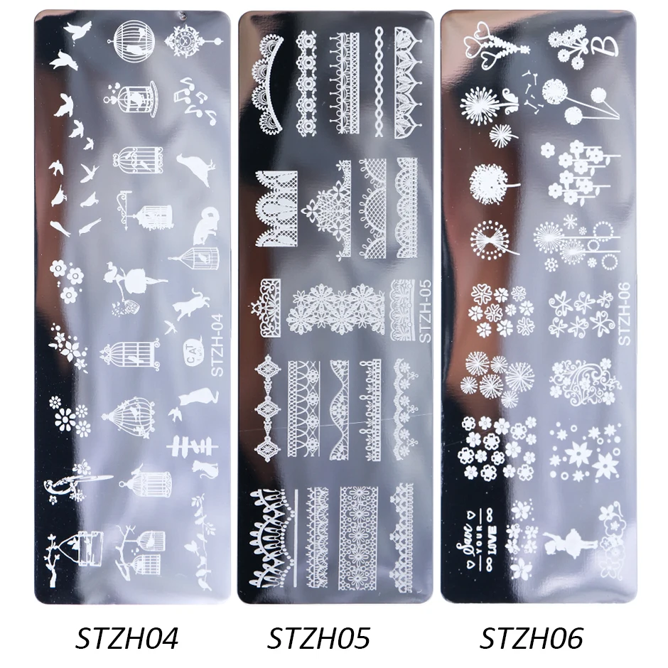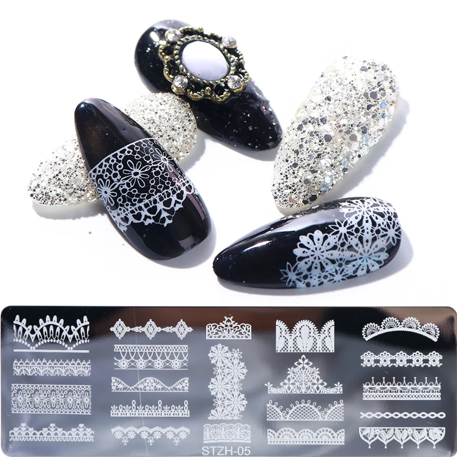 Набор пластин для стемпинга ногтей, цветочные кружева, трафареты для рисования, маникюра, декора CHSTZH01-12-2