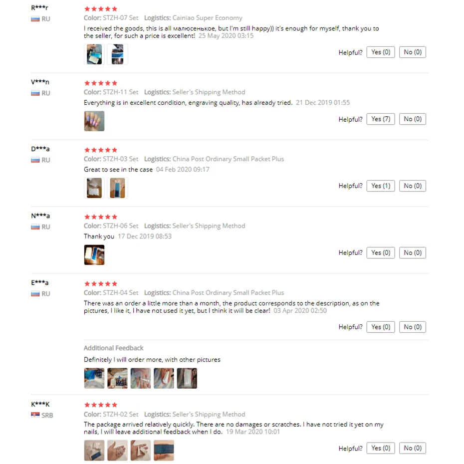 заказ быстро пришёл,через 16 дней!а описании поставила4 потому что на фото рисунки кажутся меньше,на самом деле они более крупные,что плохо для миниатюрных ногтей..