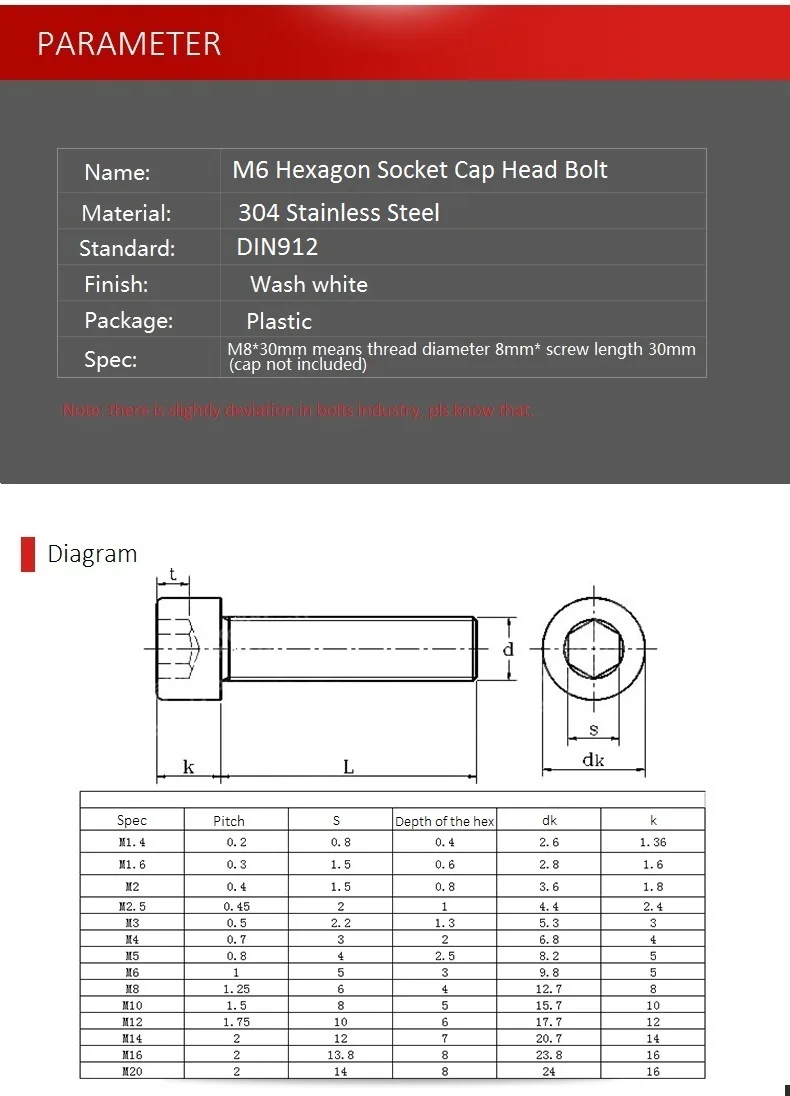 У нас есть болт с шестигранной головкой M6 * 8 мм до M6 * 120 мм