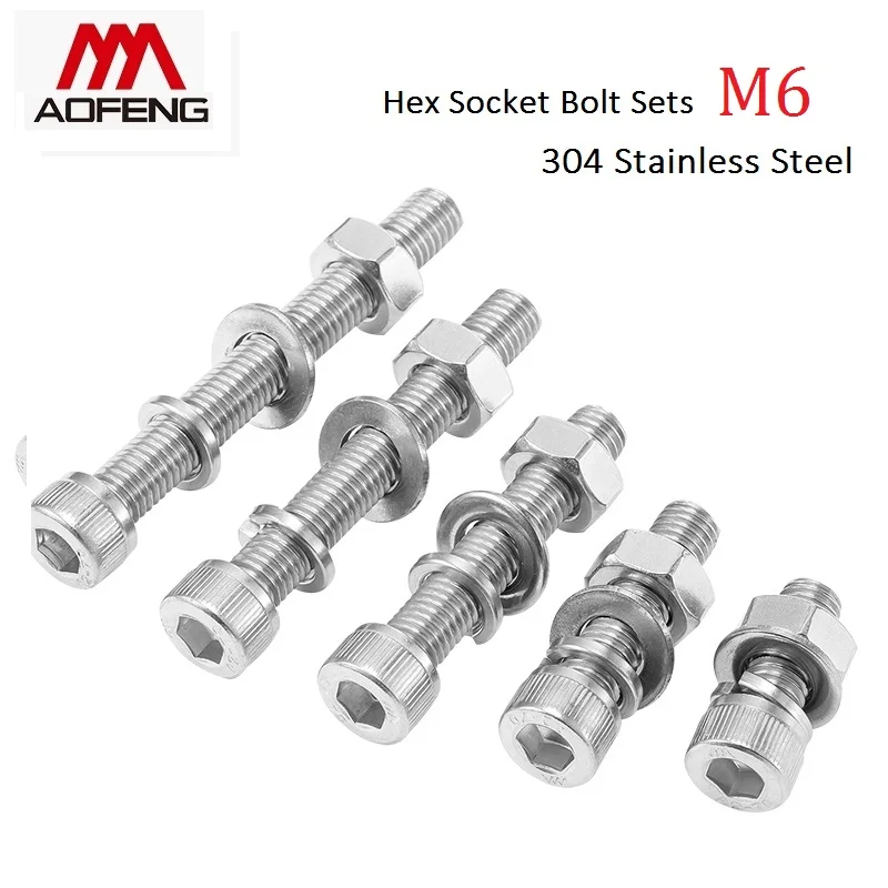 304 Нержавеющаясталь болты с головкой под шестигранник комплекты M4...