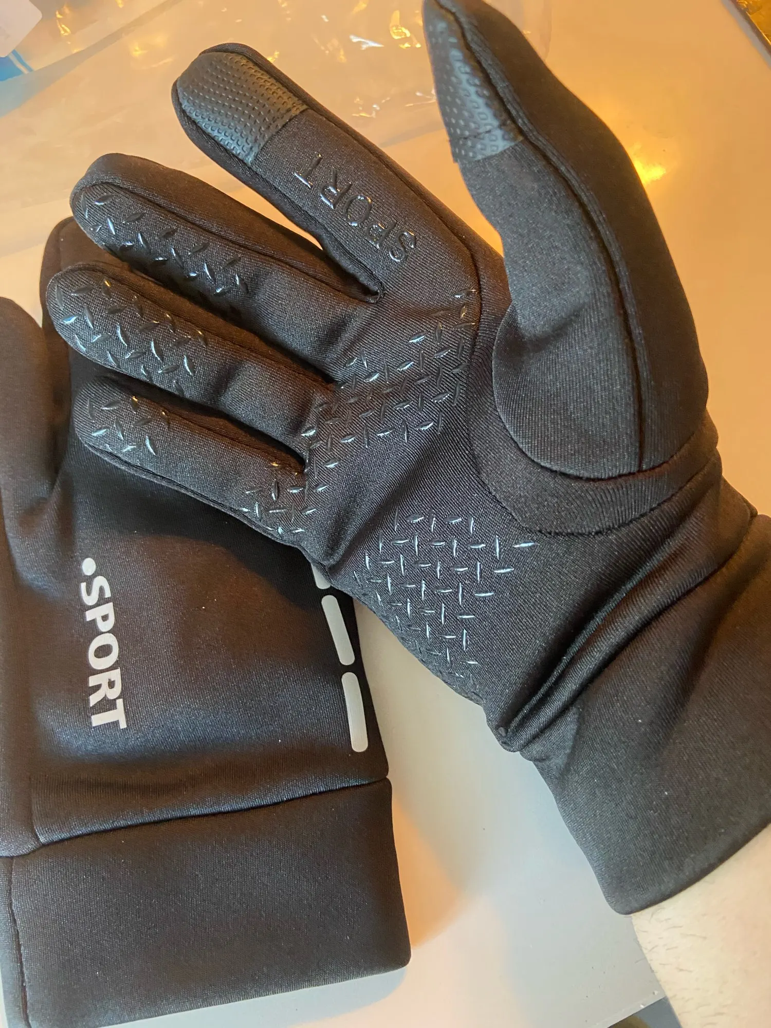 Перчатки хорошие, удобные для езды на велосипеде и теплые. Надо брать размер в размер. Я взяла L на мой M оказались большеватые. Пальцы длинные. Продавца рекомендую.