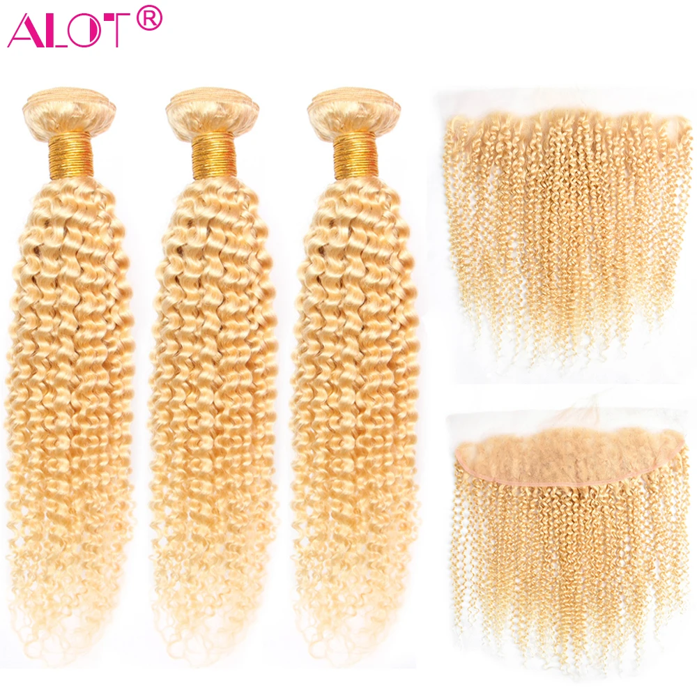 613 Курчавые Кудрявые пряди с фронтальным средним соотношением бразильские кудрявые 3 искусственные пряди кружевной фронтальной пряжкой Remy много