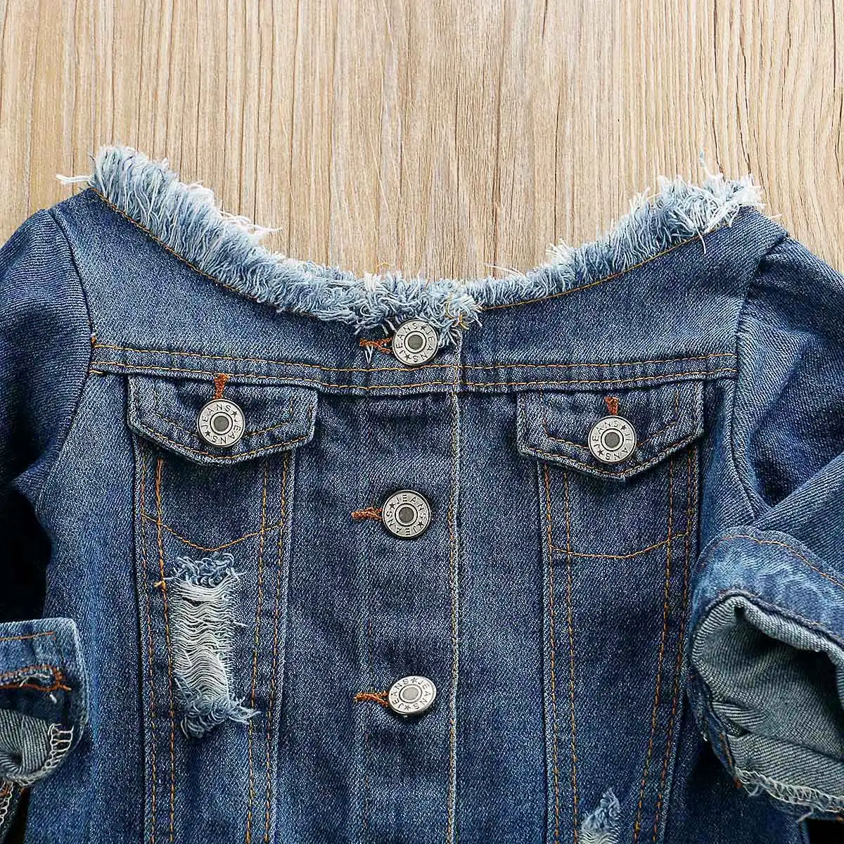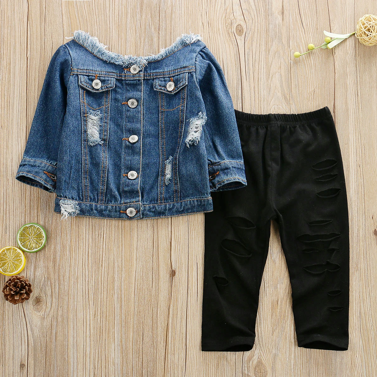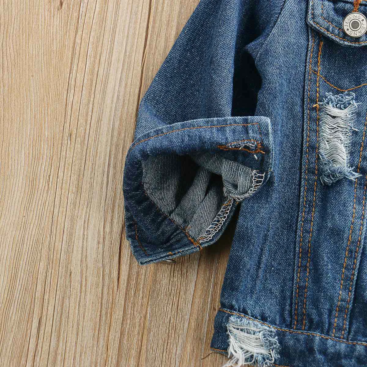 Весенне-осенняя одежда для малышей, джинсовые топы с открытыми плечами для маленьких девочек + штаны с прорезями, модные комплекты одежды из 2 предметов, От 1 до 6 лет, 2019
