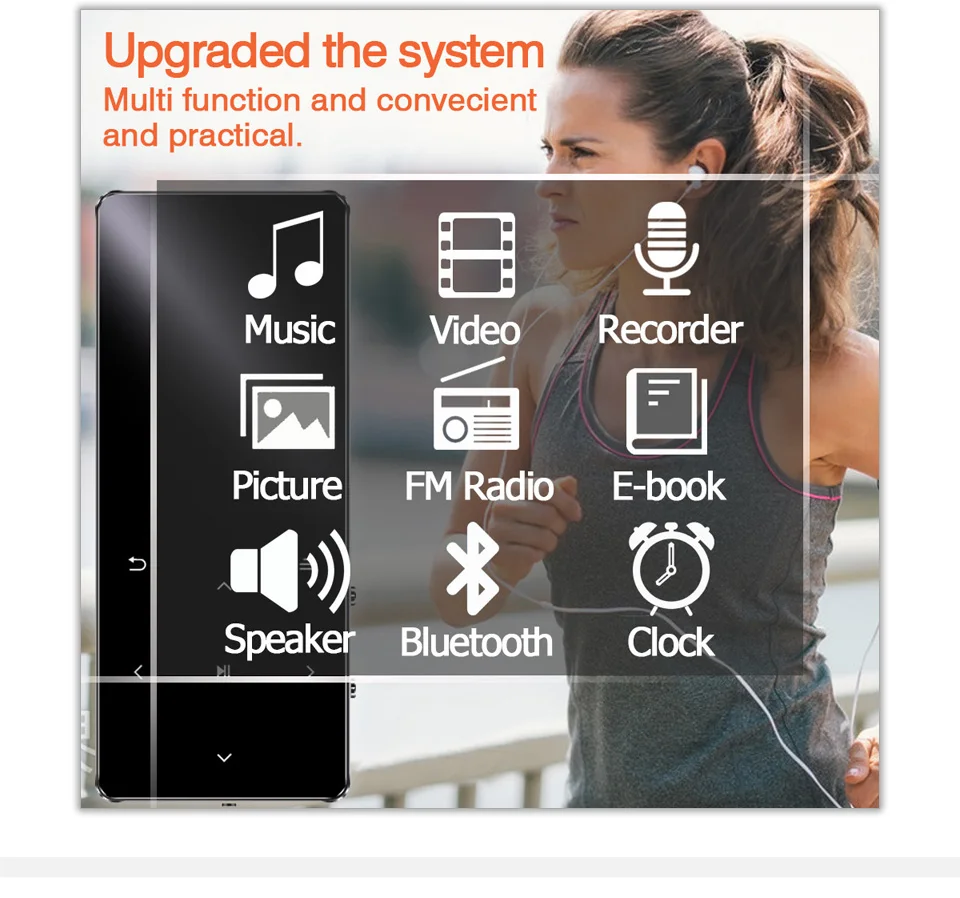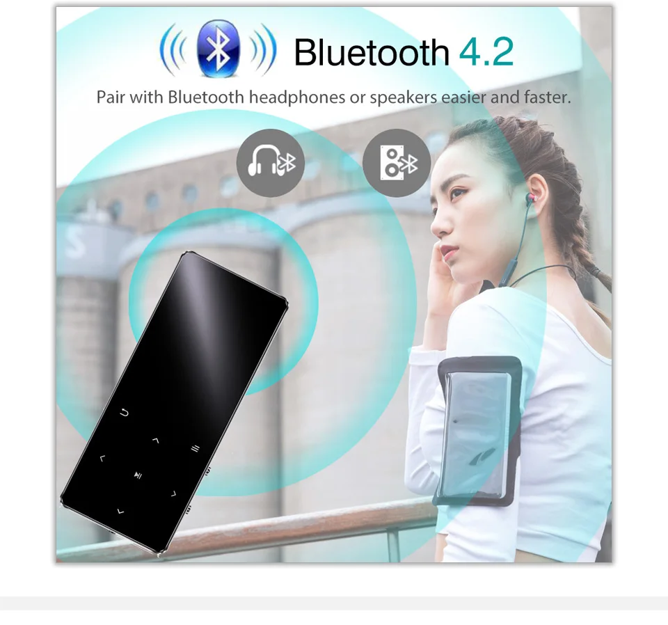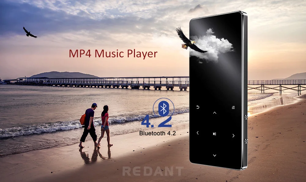 Портативный тонкий музыкальный проигрыватель REDANT MP4, bluetooth, mp3, mp4, с сенсорными клавишами 1,8 дюйма, fm-радио, видео Hifi MP 4, 16 ГБ