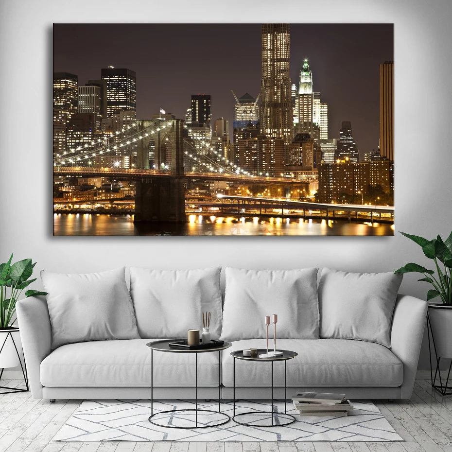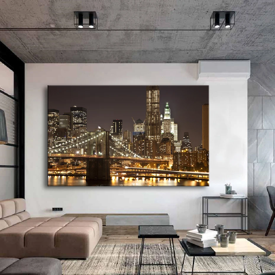 Плакаты на холсте, с изображением ночного пейзажа и Бруклинского моста
